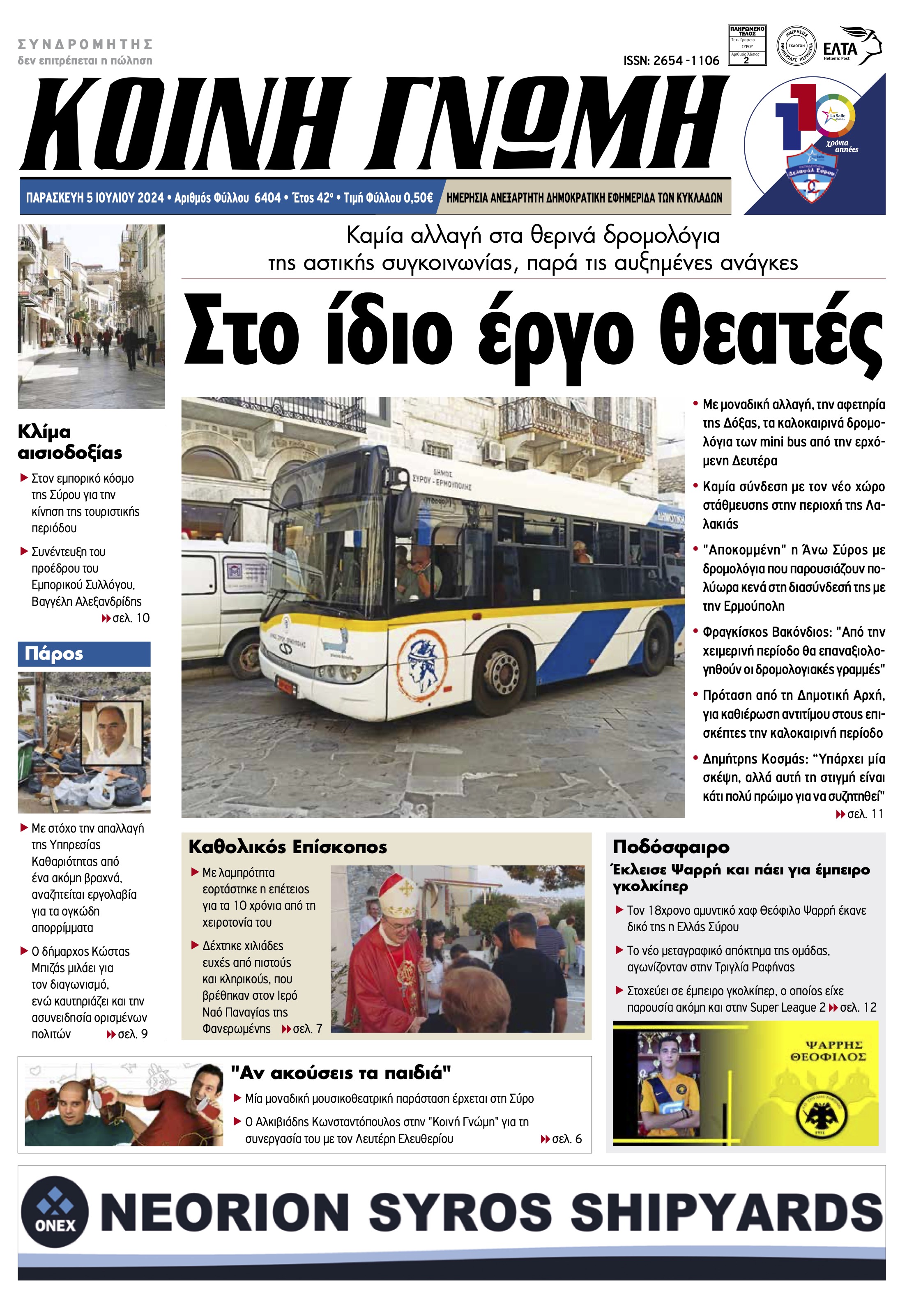 ΚΟΙΝΗ ΓΝΩΜΗ ΚΟΙΝΗ ΓΝΩΜΗ Ημερησια Εφημεριδα των Κυκλαδων