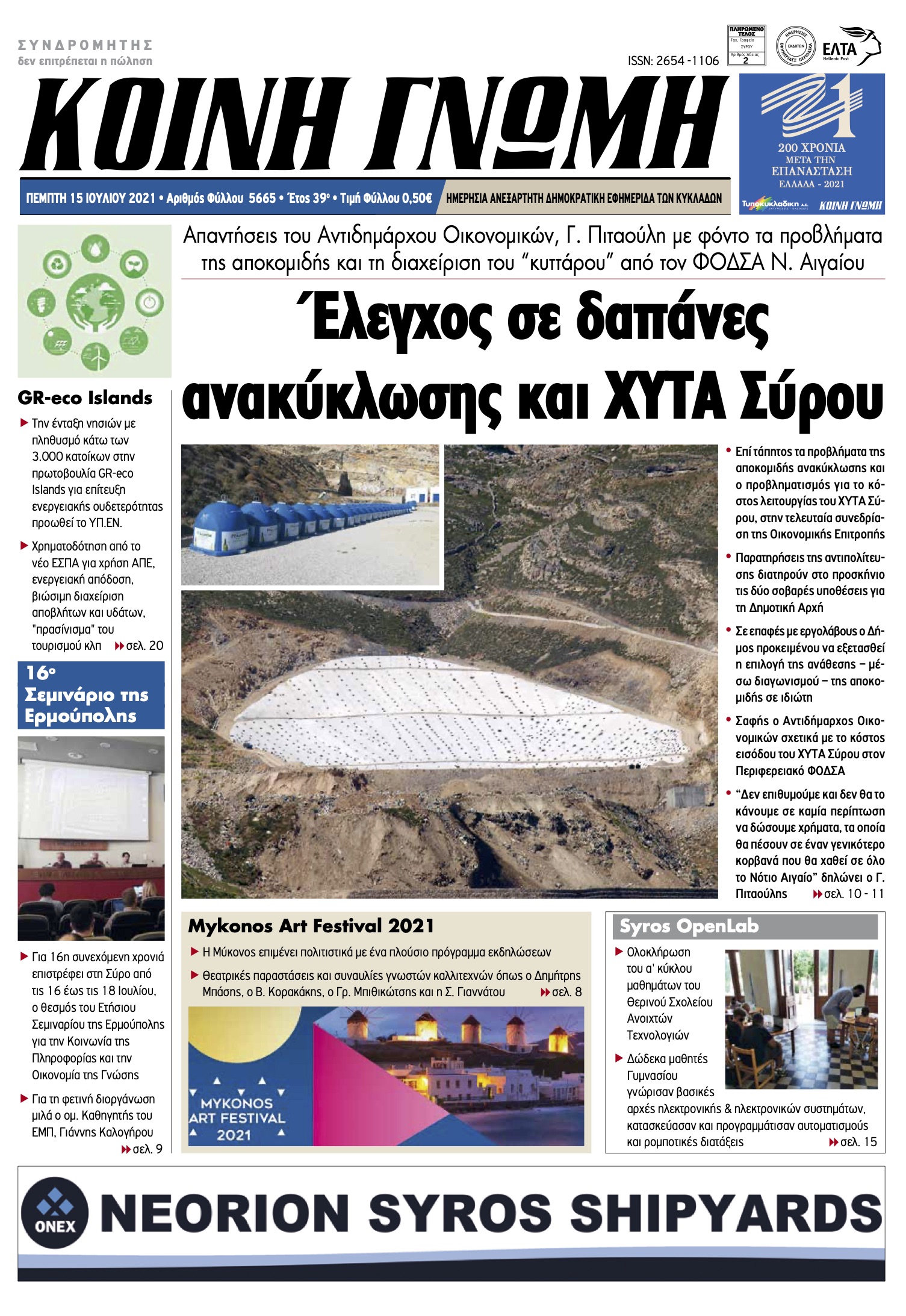 Την Κυριακή 20 Ιουλίου, το Μουσείο Ναυτικής Παράδοσης Σύρου θα πραγματοποιήσει την τελετή εγκαινίων του στο χώρο που θα φιλοξενείται (Μέγαρο Βελισσαρόπουλου, οδός Αγ. Νικολάου 8,…