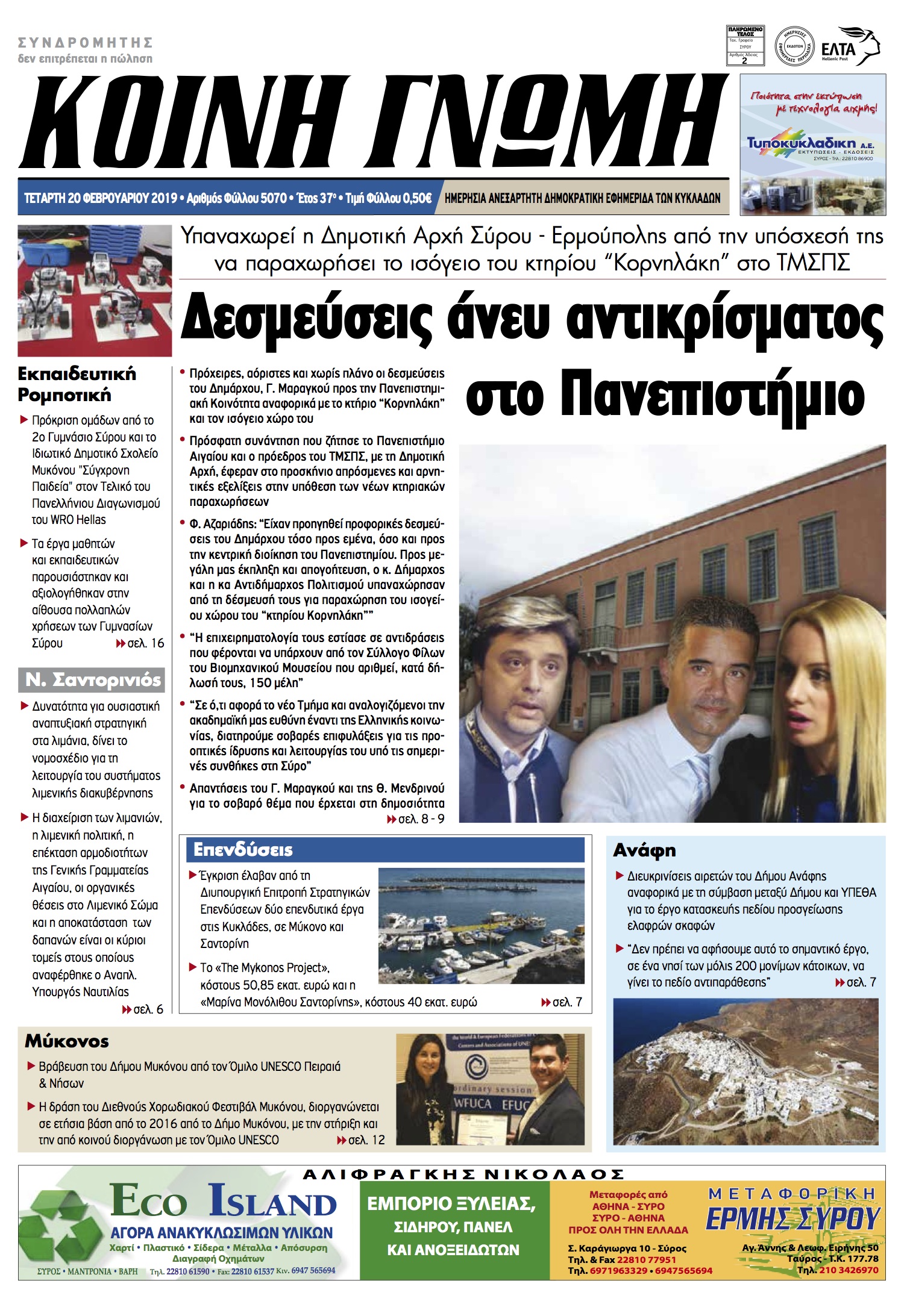 ΚΟΙΝΗ ΓΝΩΜΗ ΚΟΙΝΗ ΓΝΩΜΗ Ημερησια Εφημεριδα των Κυκλαδων