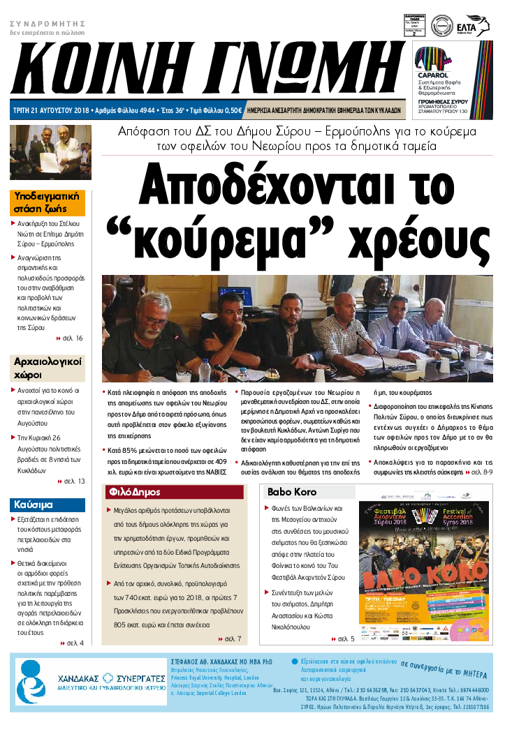 ΚΟΙΝΗ ΓΝΩΜΗ ΚΟΙΝΗ ΓΝΩΜΗ Ημερησια Εφημεριδα των Κυκλαδων