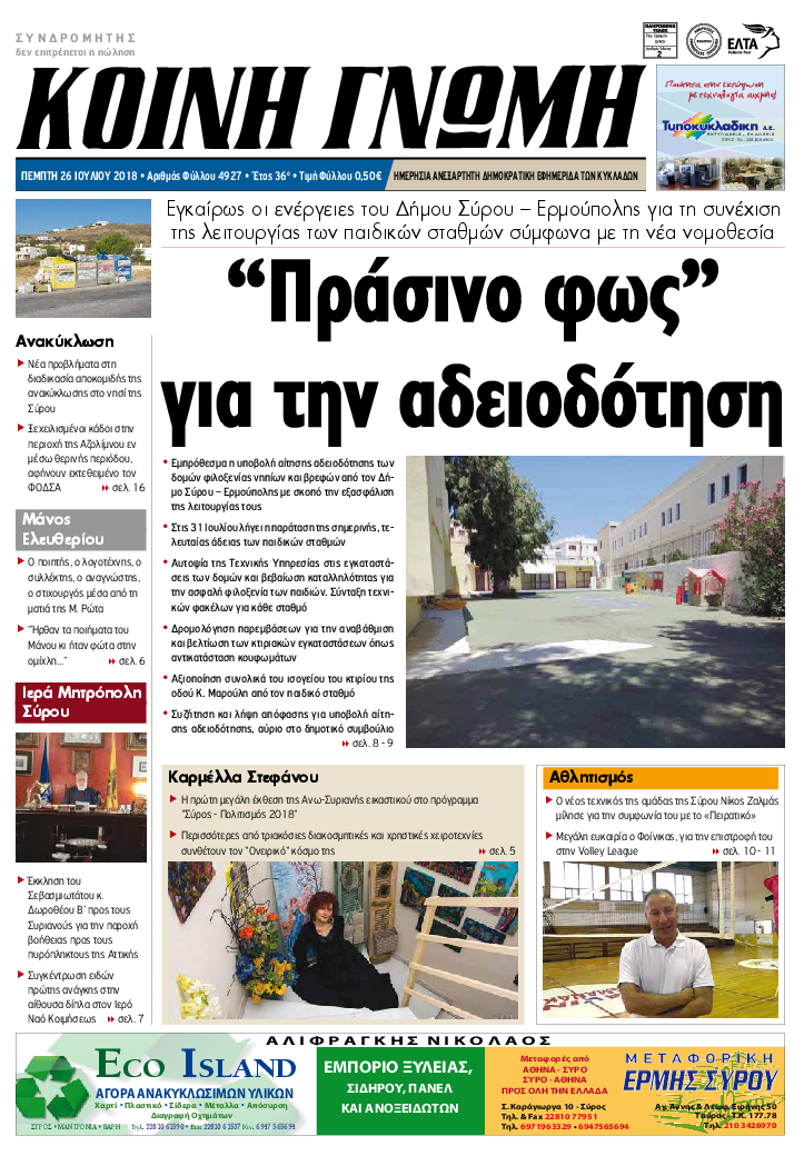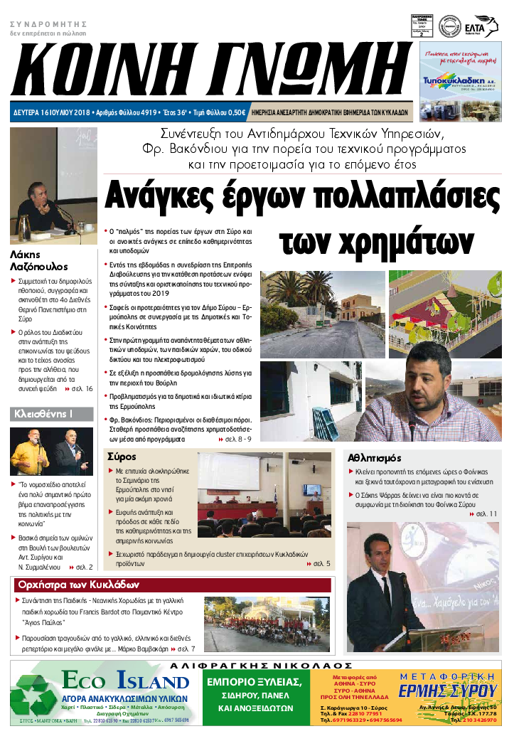 ΚΟΙΝΗ ΓΝΩΜΗ ΚΟΙΝΗ ΓΝΩΜΗ Ημερησια Εφημεριδα των Κυκλαδων