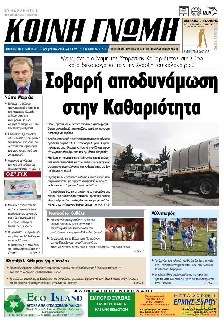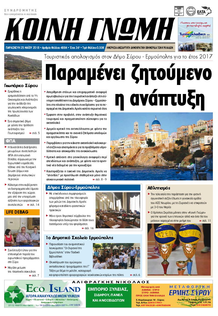 ΚΟΙΝΗ ΓΝΩΜΗ ΚΟΙΝΗ ΓΝΩΜΗ Ημερησια Εφημεριδα των Κυκλαδων