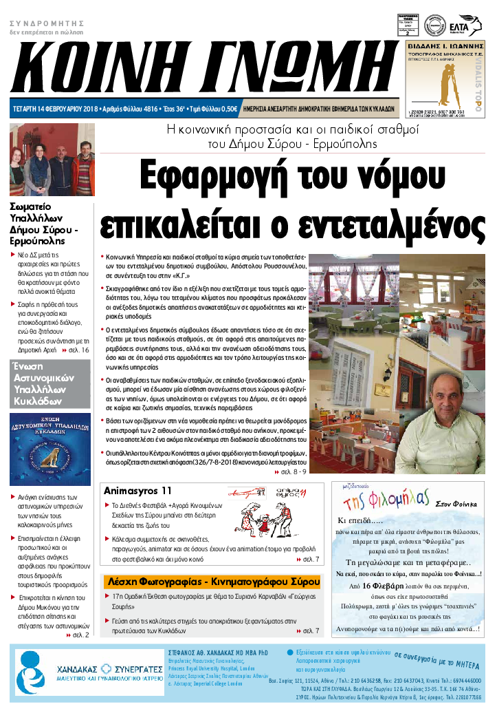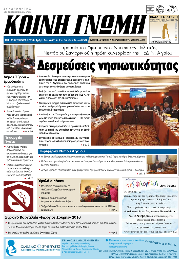 ΚΟΙΝΗ ΓΝΩΜΗ ΚΟΙΝΗ ΓΝΩΜΗ Ημερησια Εφημεριδα των Κυκλαδων