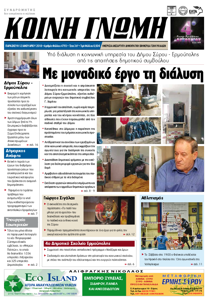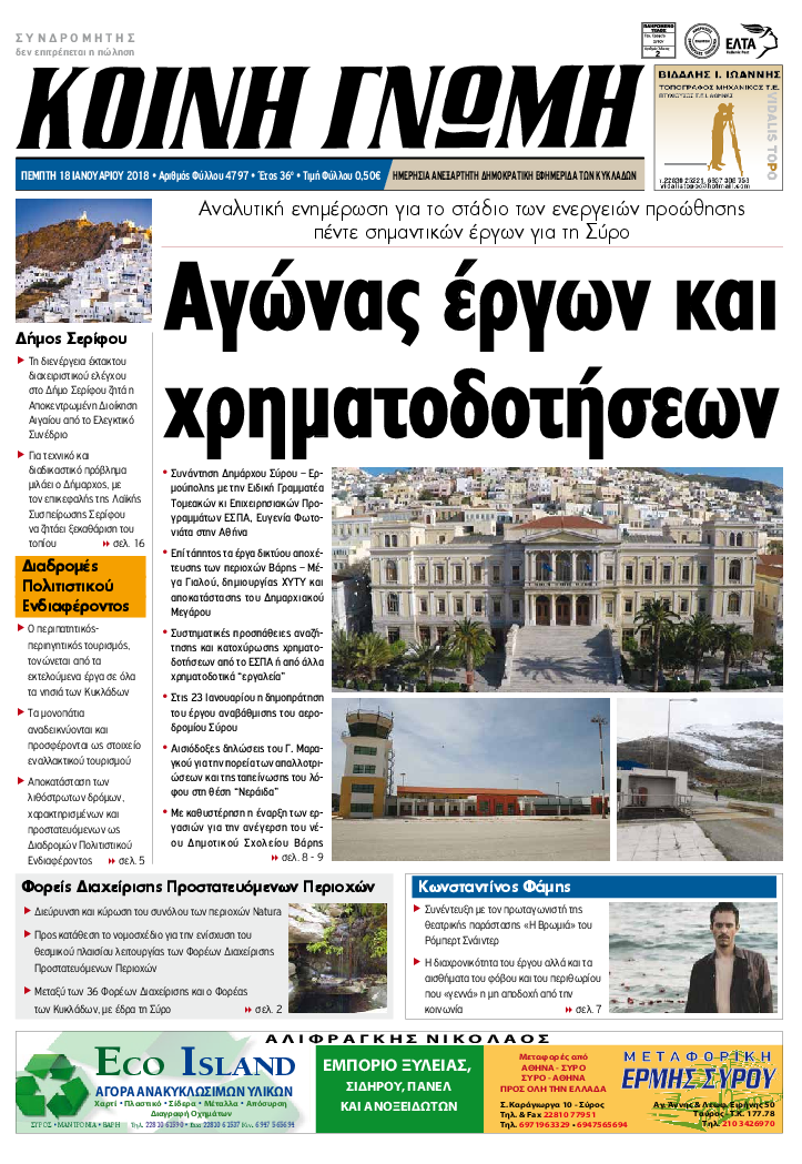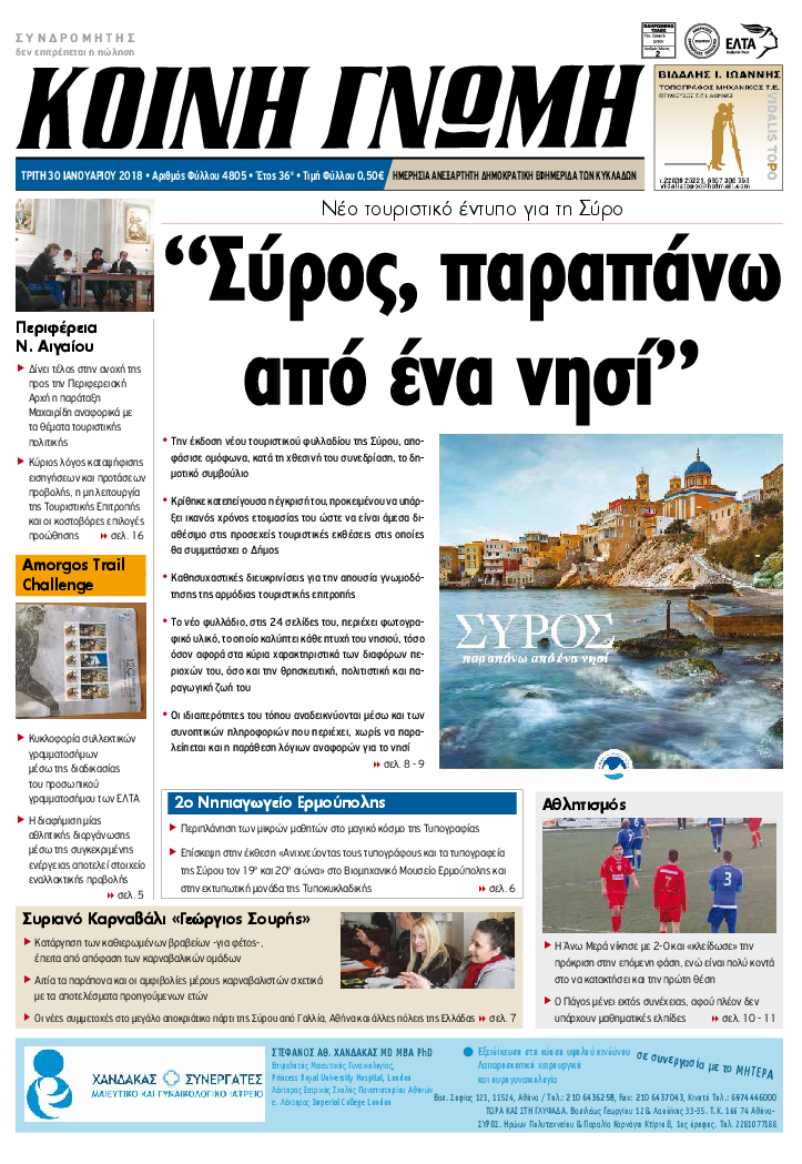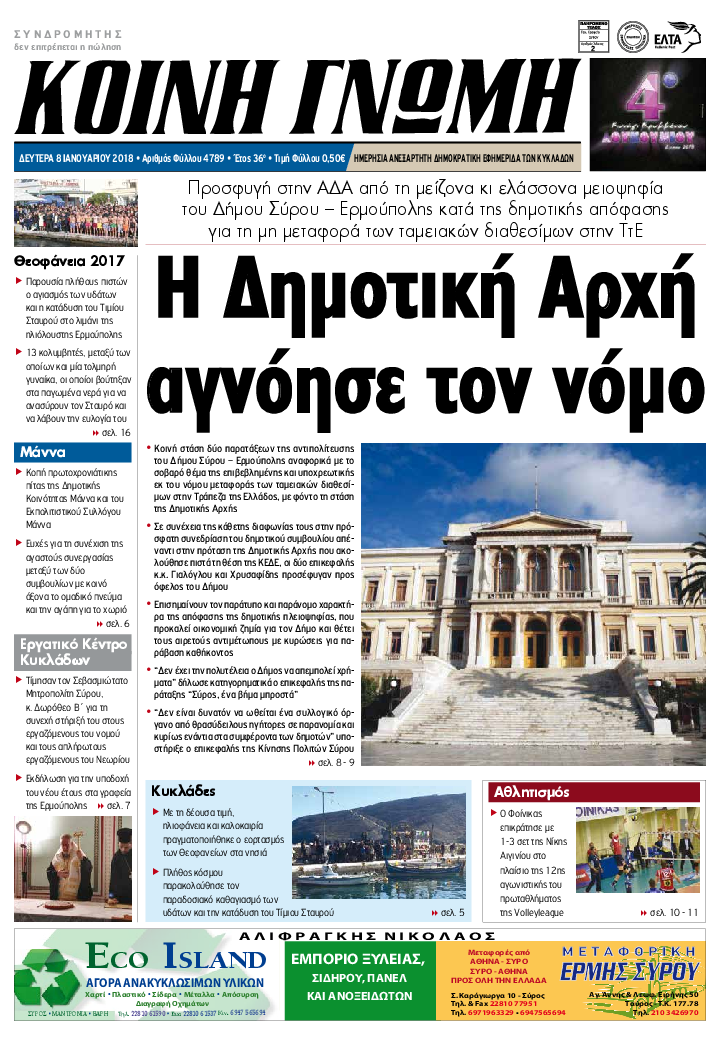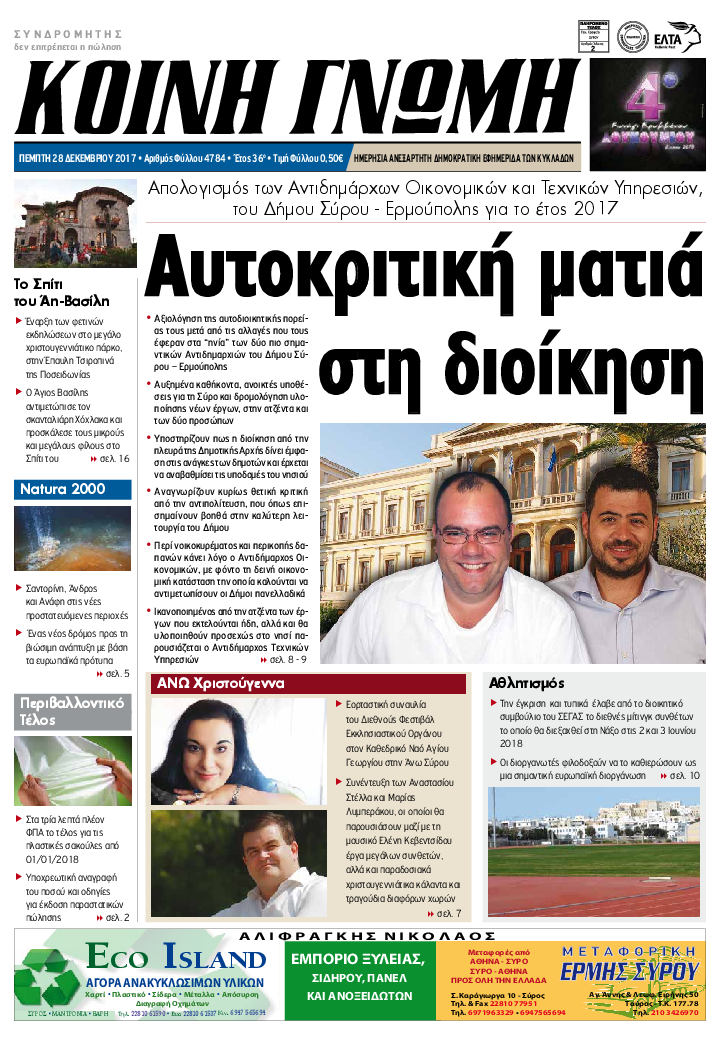 ΚΟΙΝΗ ΓΝΩΜΗ ΚΟΙΝΗ ΓΝΩΜΗ Ημερησια Εφημεριδα των Κυκλαδων
