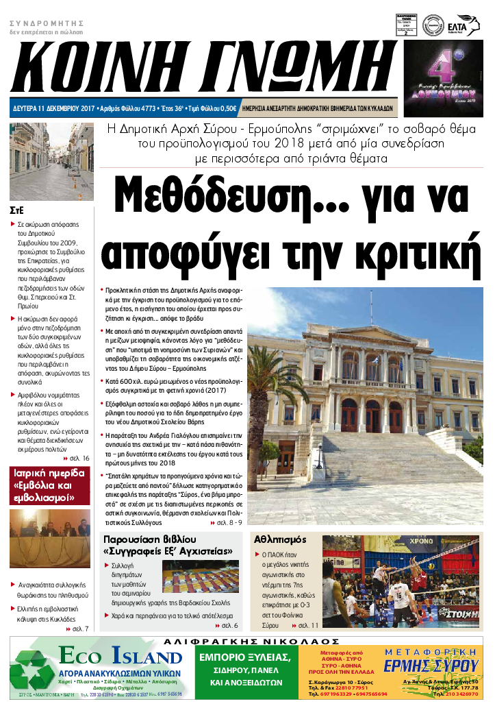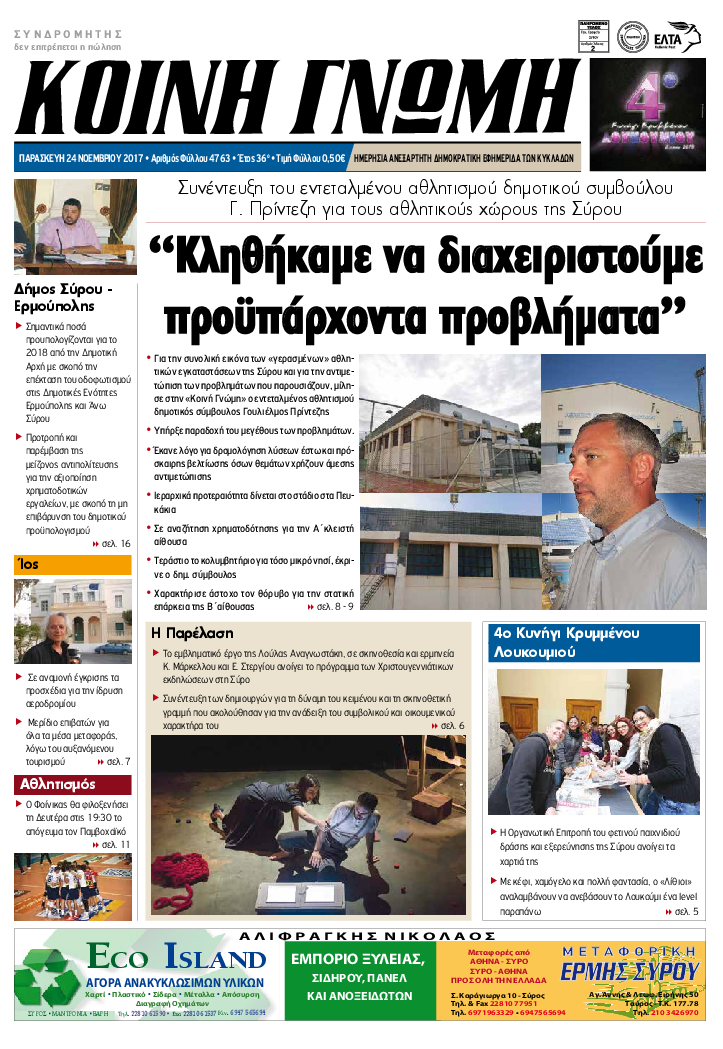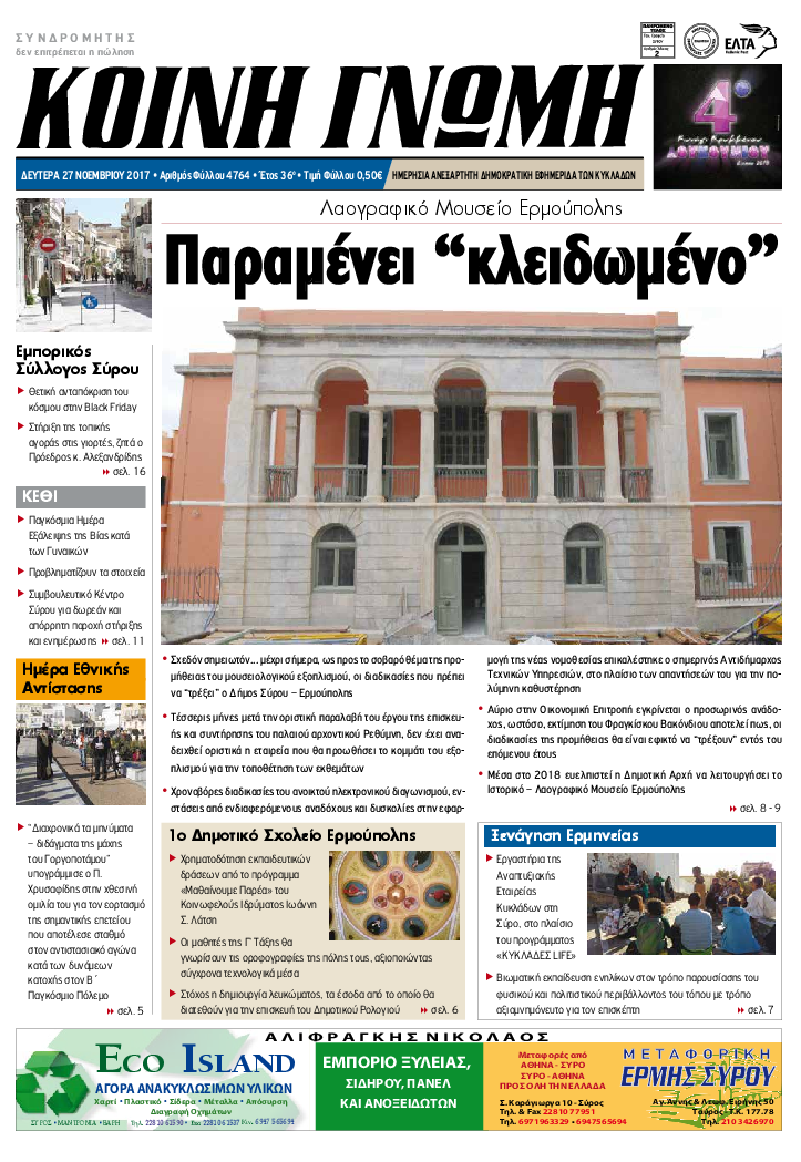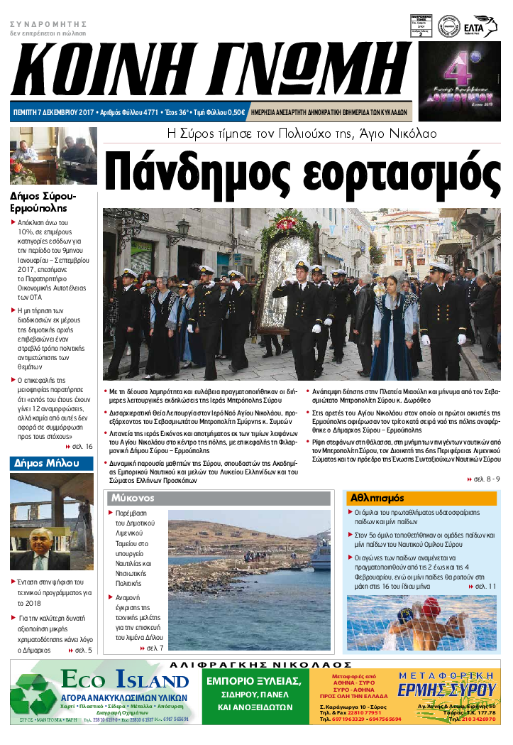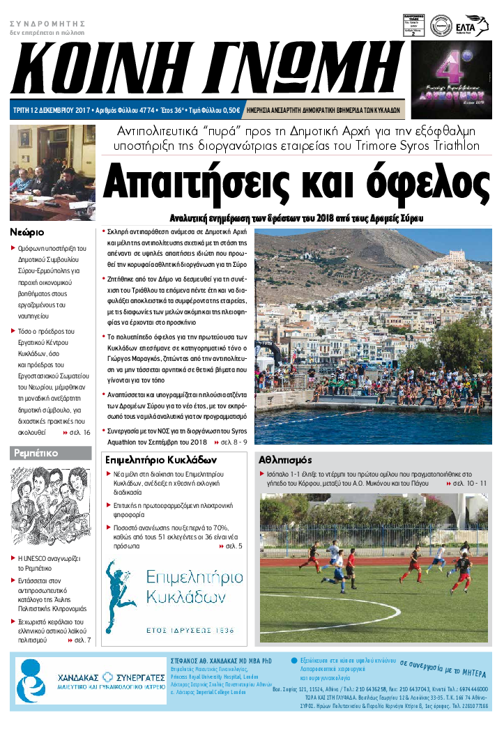 ΚΟΙΝΗ ΓΝΩΜΗ ΚΟΙΝΗ ΓΝΩΜΗ Ημερησια Εφημεριδα των Κυκλαδων