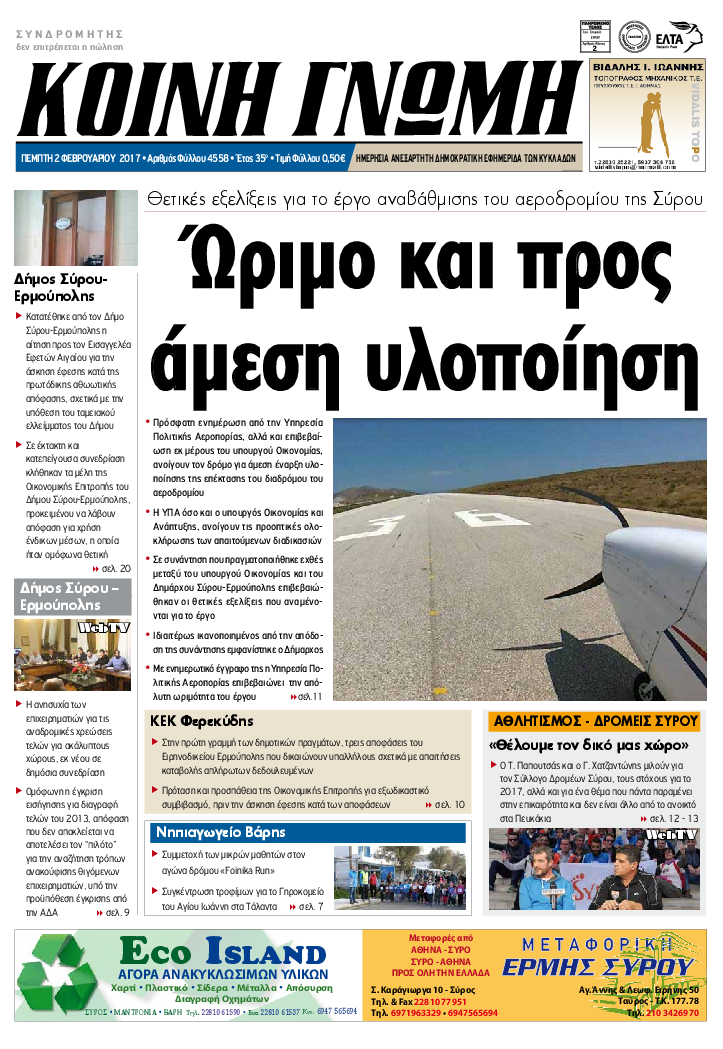 ΚΟΙΝΗ ΓΝΩΜΗ ΚΟΙΝΗ ΓΝΩΜΗ Ημερησια Εφημεριδα των Κυκλαδων
