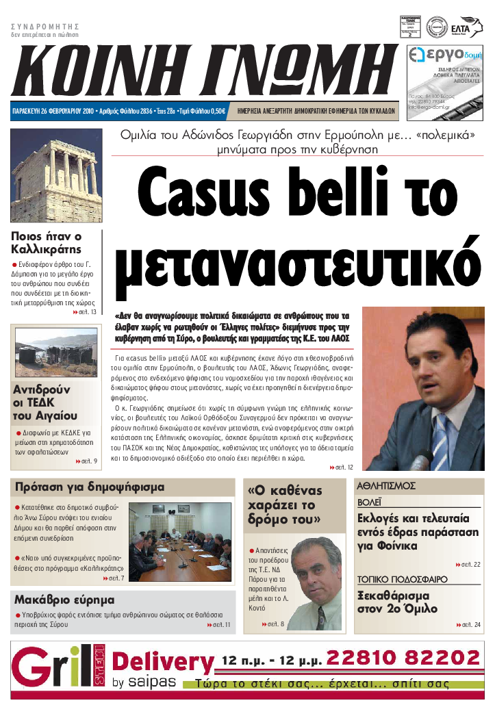 ΚΟΙΝΗ ΓΝΩΜΗ ΚΟΙΝΗ ΓΝΩΜΗ Ημερησια Εφημεριδα των Κυκλαδων
