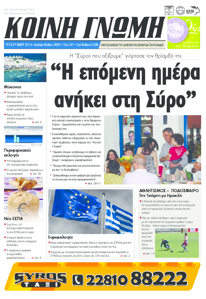 ΚΟΙΝΗ ΓΝΩΜΗ ΚΟΙΝΗ ΓΝΩΜΗ Ημερησια Εφημεριδα των Κυκλαδων