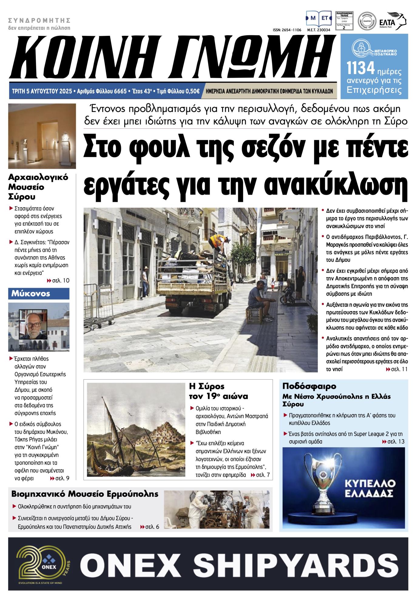 ΚΟΙΝΗ ΓΝΩΜΗ ΚΟΙΝΗ ΓΝΩΜΗ Ημερησια Εφημεριδα των Κυκλαδων