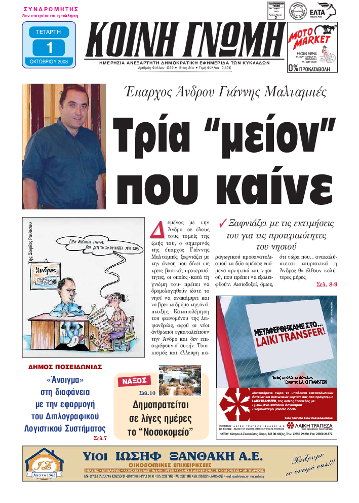 ΚΟΙΝΗ ΓΝΩΜΗ ΚΟΙΝΗ ΓΝΩΜΗ Ημερησια Εφημεριδα των Κυκλαδων