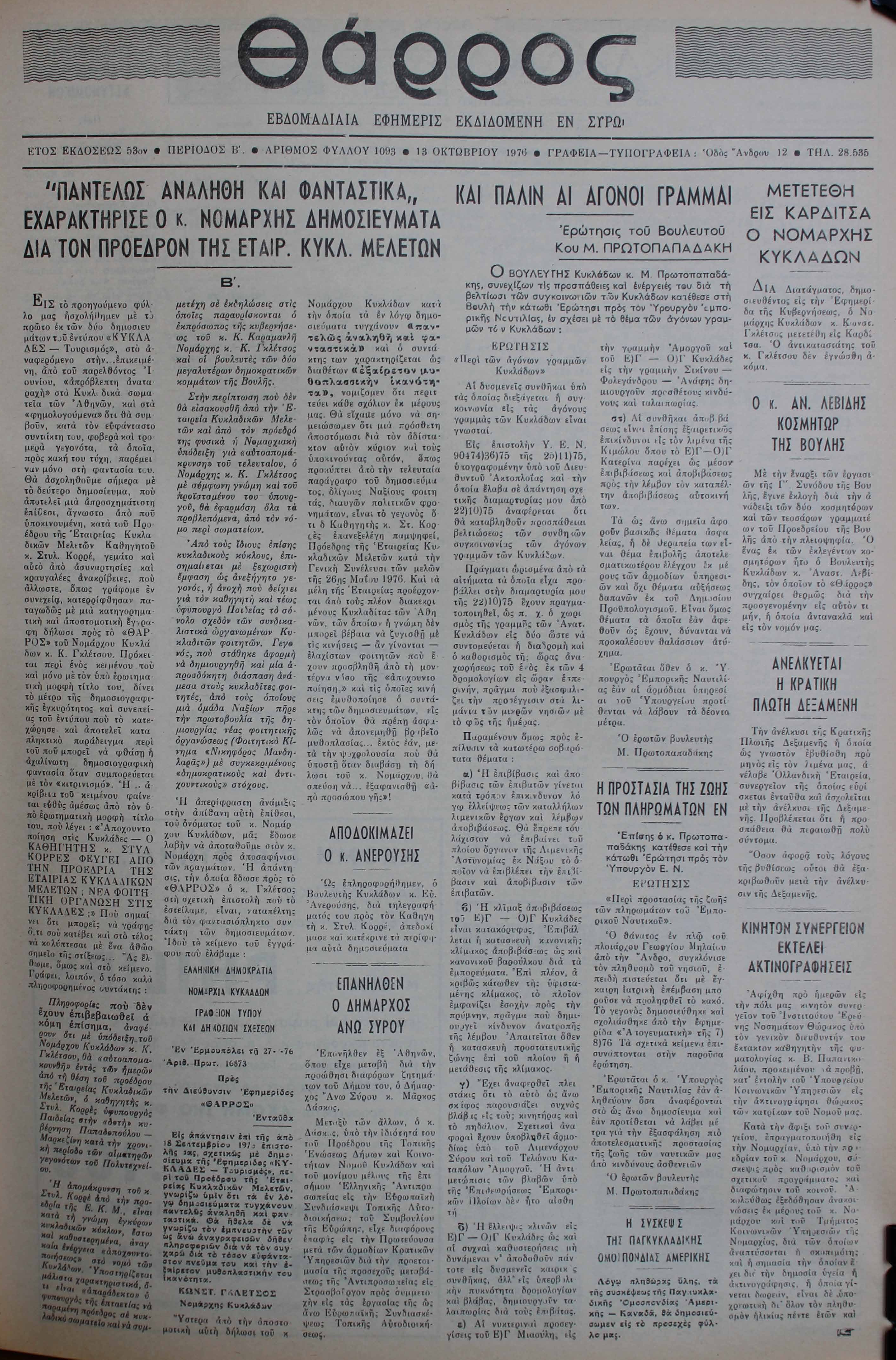 2. Νομάρχης Κυκλάδων