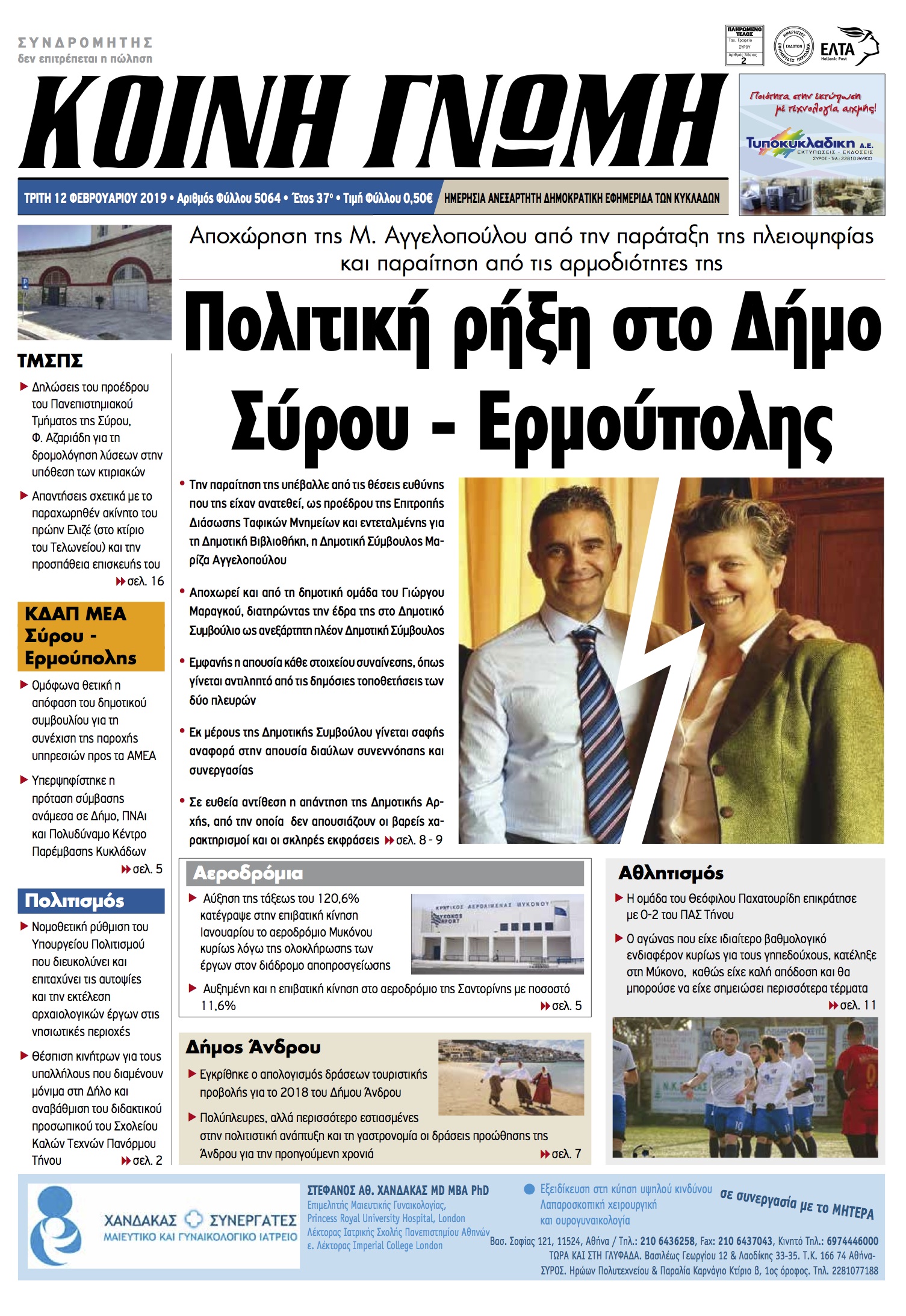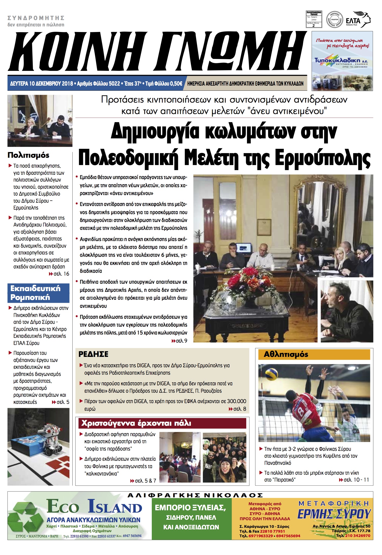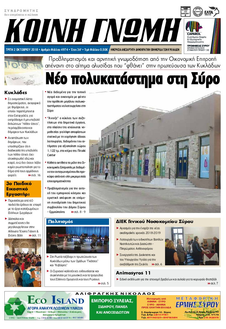 ΚΟΙΝΗ ΓΝΩΜΗ ΚΟΙΝΗ ΓΝΩΜΗ Ημερησια Εφημεριδα των Κυκλαδων