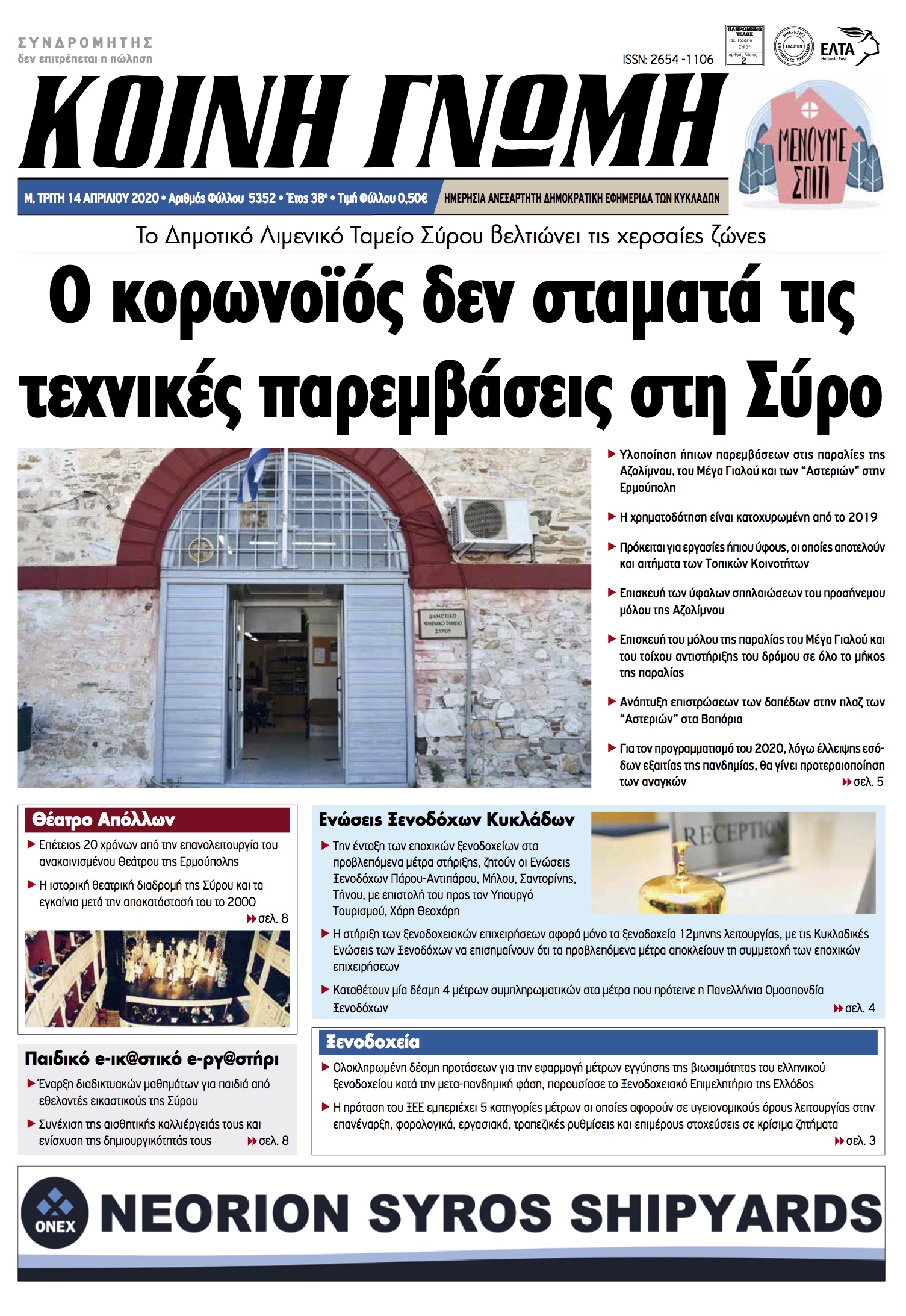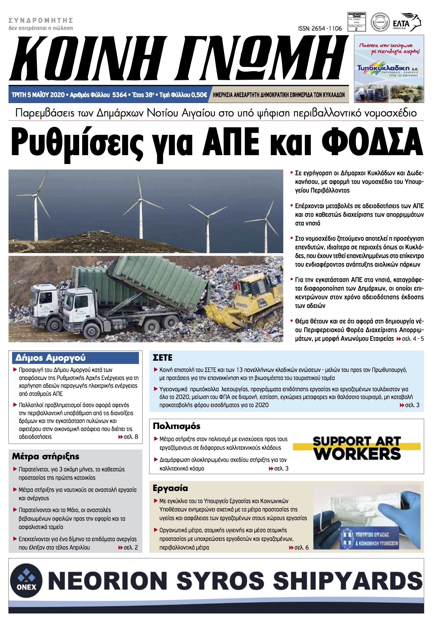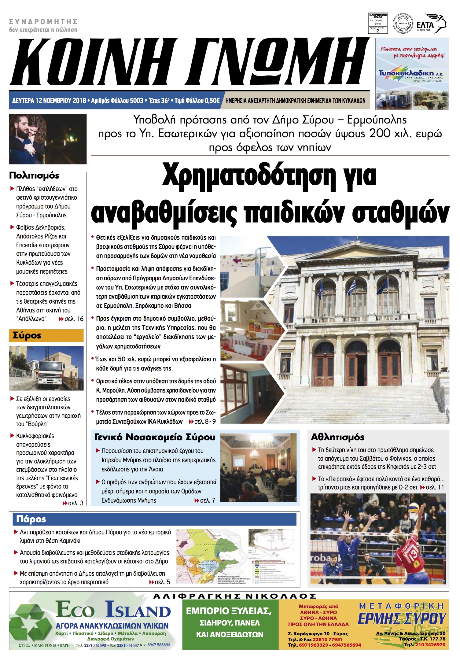 ΚΟΙΝΗ ΓΝΩΜΗ ΚΟΙΝΗ ΓΝΩΜΗ Ημερησια Εφημεριδα των Κυκλαδων