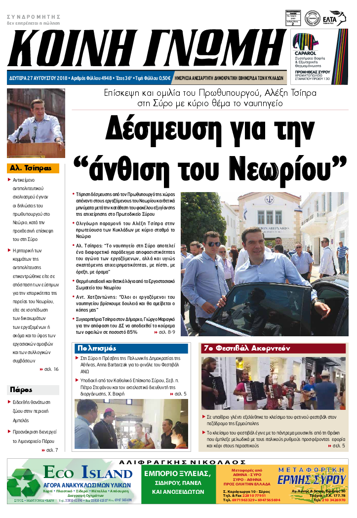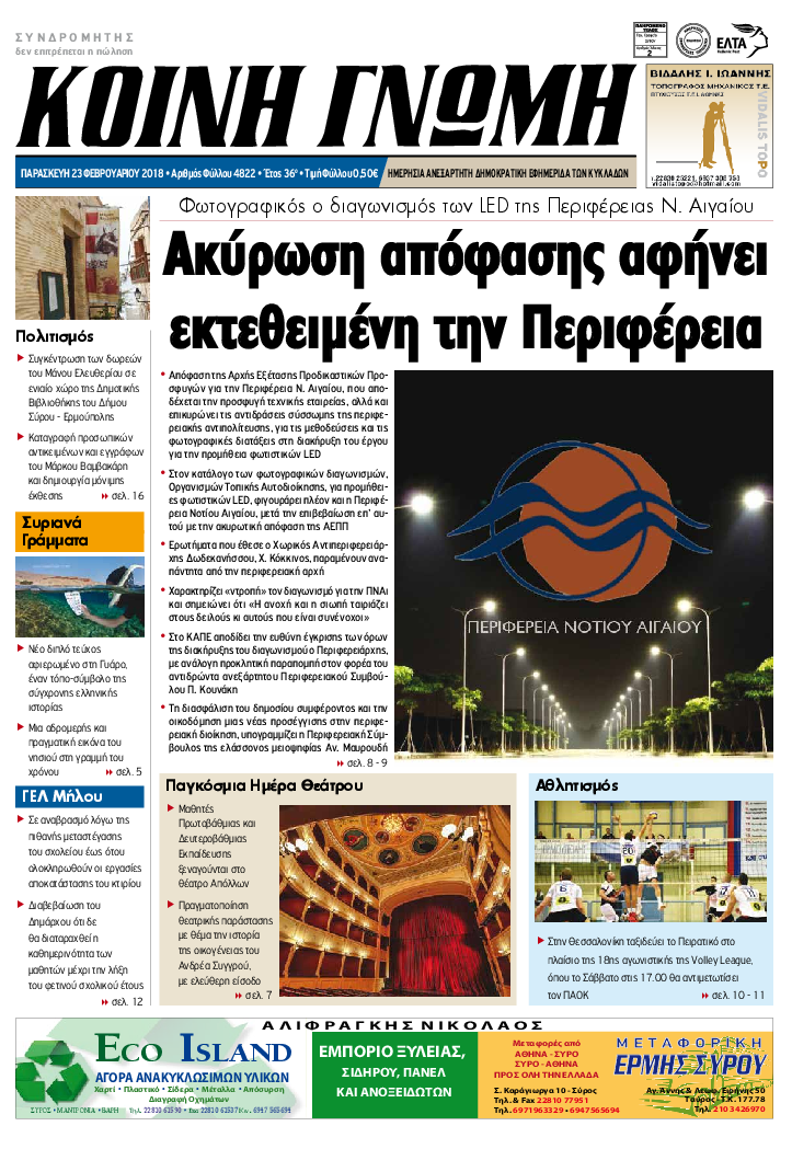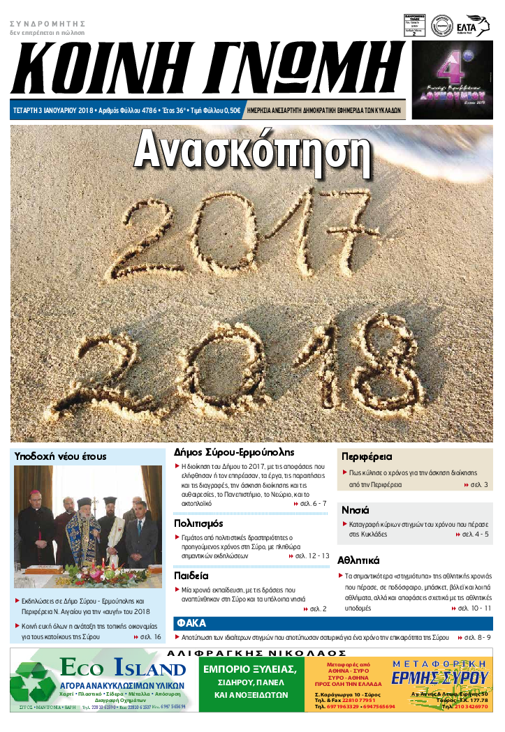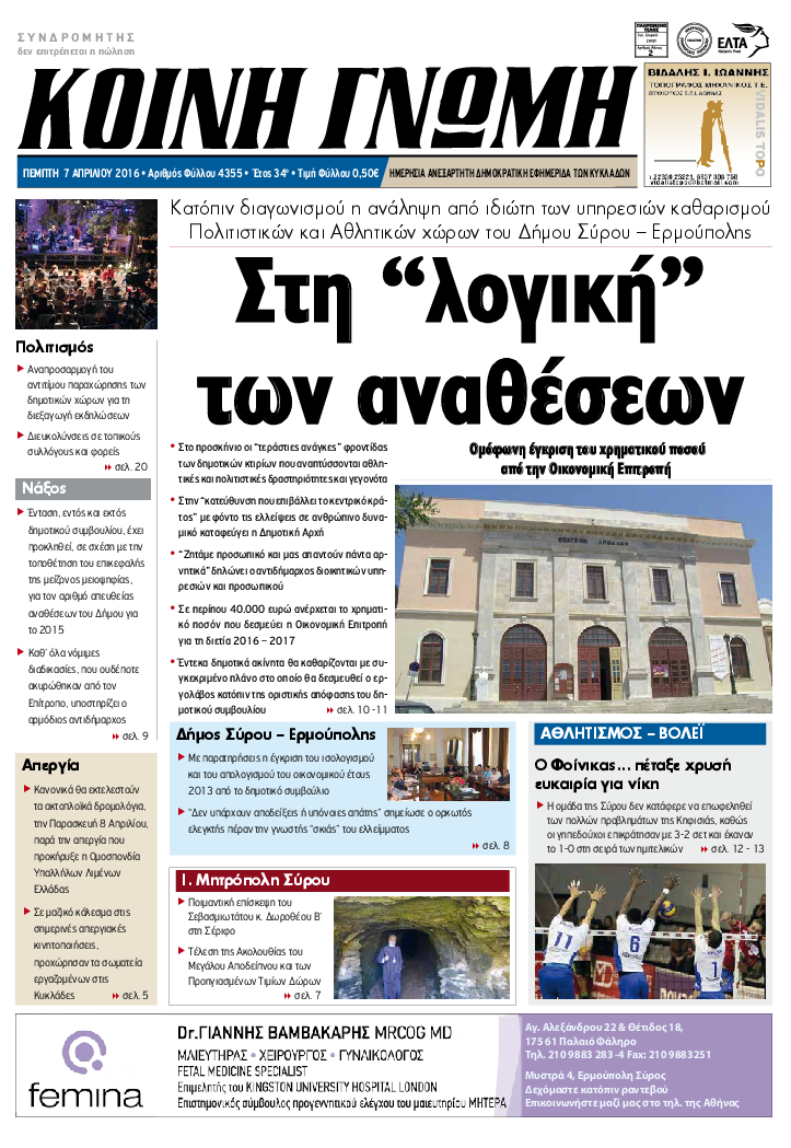 ΚΟΙΝΗ ΓΝΩΜΗ ΚΟΙΝΗ ΓΝΩΜΗ Ημερησια Εφημεριδα των Κυκλαδων