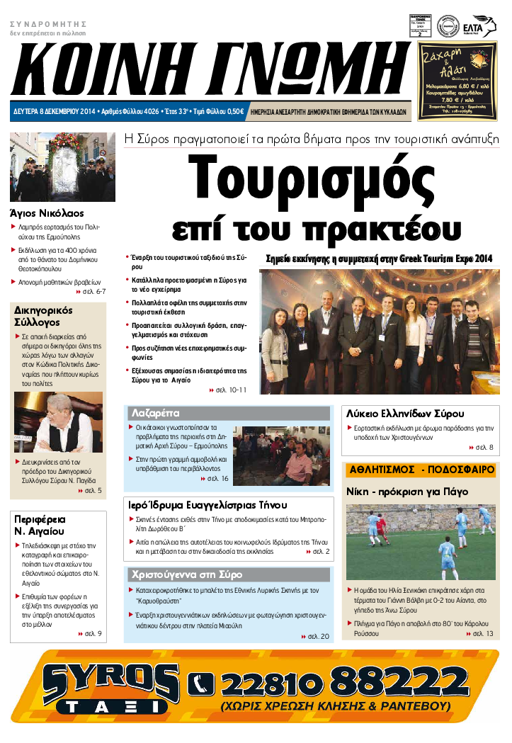 ΚΟΙΝΗ ΓΝΩΜΗ ΚΟΙΝΗ ΓΝΩΜΗ Ημερησια Εφημεριδα των Κυκλαδων