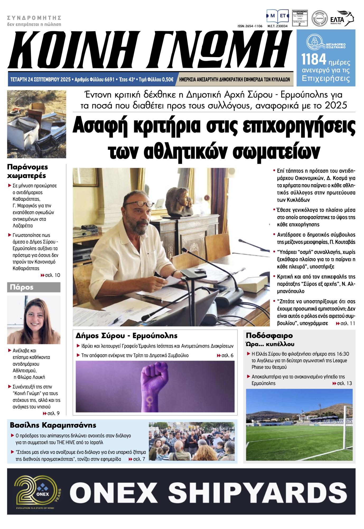 ΚΟΙΝΗ ΓΝΩΜΗ ΚΟΙΝΗ ΓΝΩΜΗ Ημερησια Εφημεριδα των Κυκλαδων