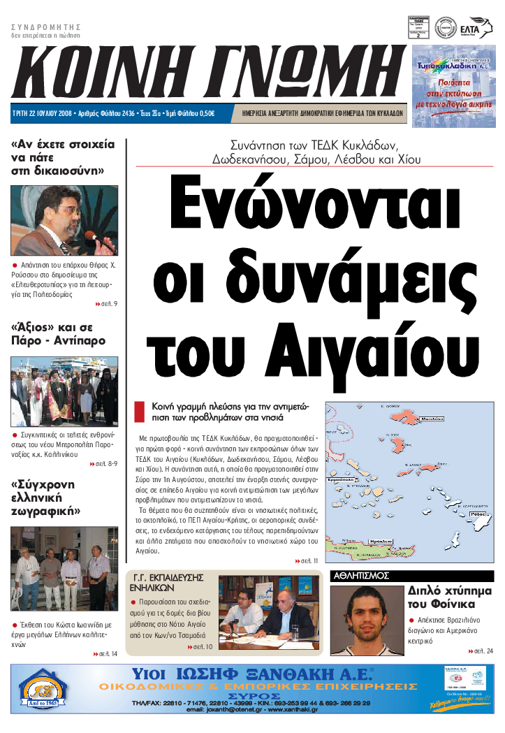 ΚΟΙΝΗ ΓΝΩΜΗ ΚΟΙΝΗ ΓΝΩΜΗ Ημερησια Εφημεριδα των Κυκλαδων