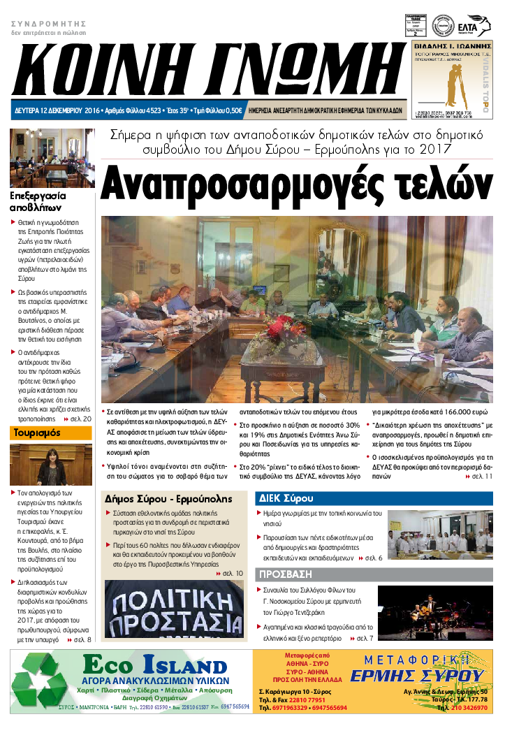 ΚΟΙΝΗ ΓΝΩΜΗ ΚΟΙΝΗ ΓΝΩΜΗ Ημερησια Εφημεριδα των Κυκλαδων