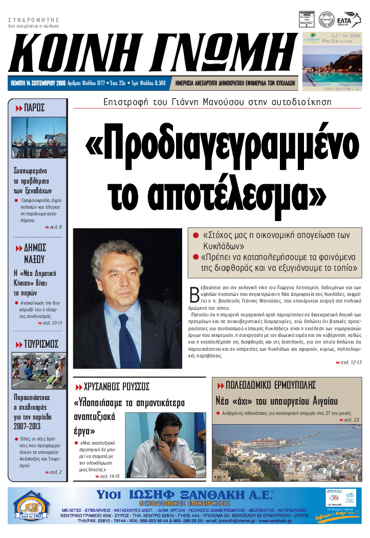 ΚΟΙΝΗ ΓΝΩΜΗ ΚΟΙΝΗ ΓΝΩΜΗ Ημερησια Εφημεριδα των Κυκλαδων