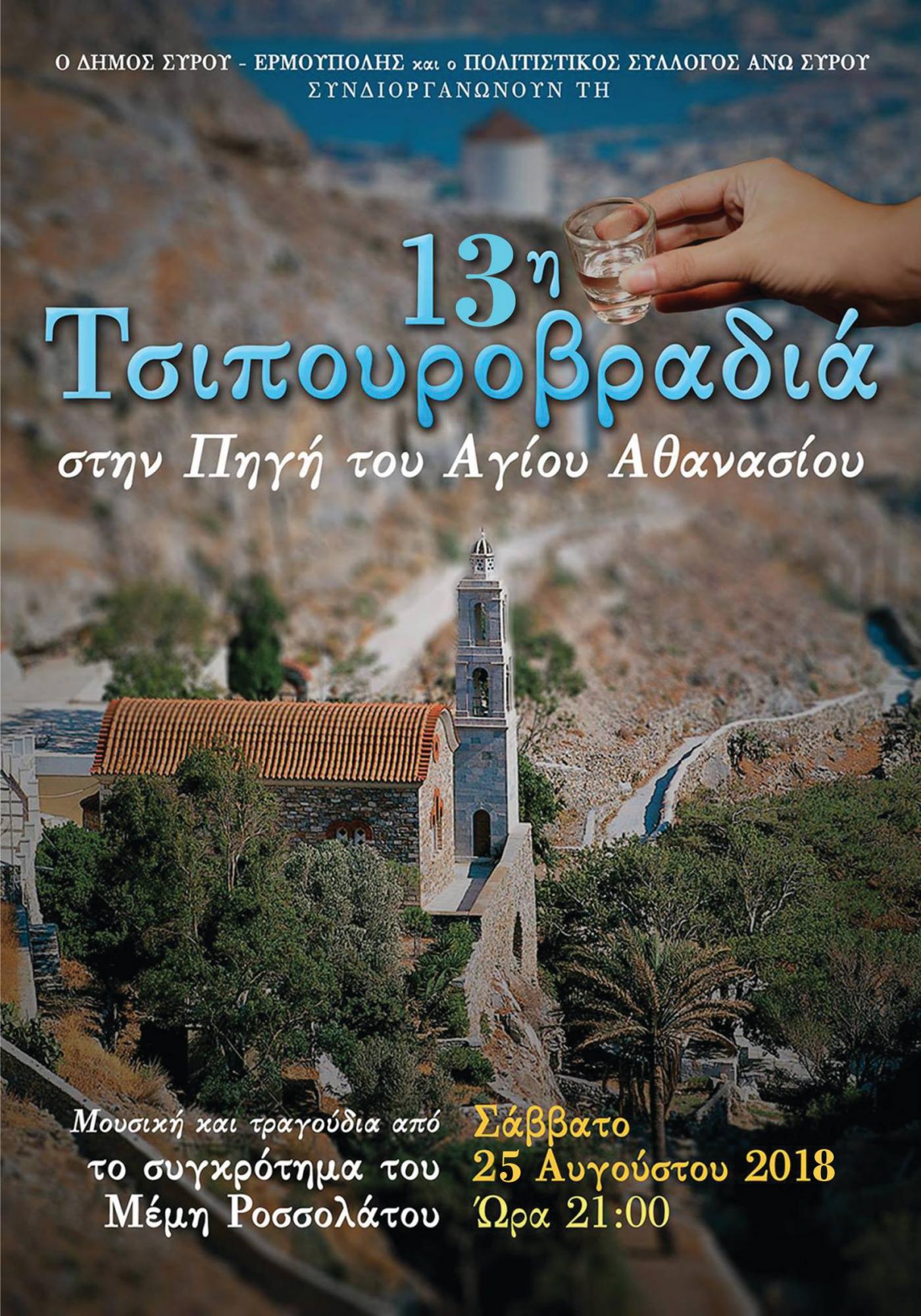 13η Τσιπουροβραδιά Τρίτη 21 Αυγούστου 2018 - 09:15 Το Σάββατο 25 Αυγούστου η 13η Τσιπουροβραδιά στην πηγή του Αγίου Αθανασίου. Διαφήμιση Διαφήμιση Διαφήμιση #Προσεχώς #τσιπουροβραδιά