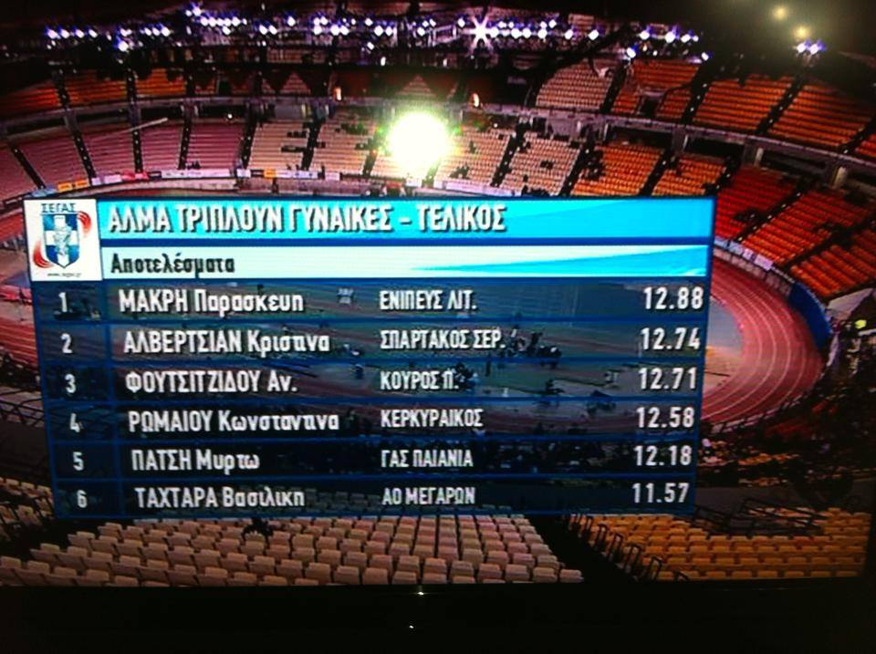 Η Συριανή πέταξε στα 12.71 και θα μπορούσε να ήταν ακόμη ψηλότερα αφού η διαφορά από την δεύτερη θέση ήταν μόλις 3 εκατοστά και από την πρώτη 17. Η Φουτσιτζίδου μετά την επιστροφή της στην αγωνιστική δράση, δείχνει ότι μπορεί να φτάσει υψηλότερα, αφού στους έως τώρα αγώνες που έχει δώσει, ένα μέσα στις πρώτες θέσεις και στις θέσεις που παίρνουν μετάλλιο.