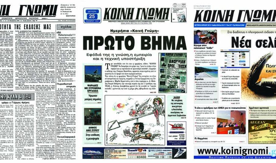 Η Ημερήσια Ανεξάρτητη Δημοκρατική Εφημερίδα των Κυκλάδων “Κοινή Γνώμη” συμπληρώνει σήμερα τα 5.000 φύλλα, συνεχούς και αδιάλειπτης κυκλοφορίας της.