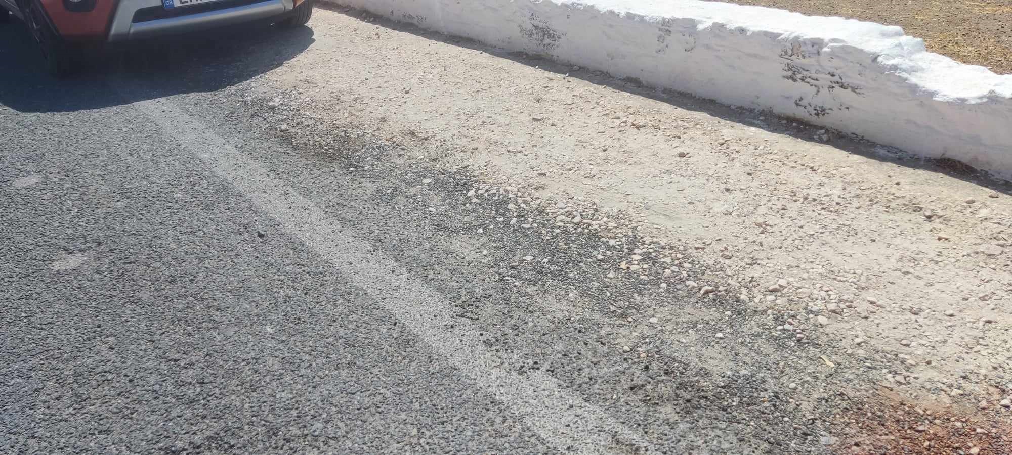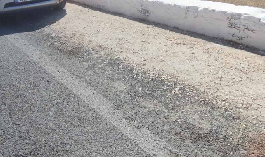 Την κατάσταση στην περιοχή αναδεικνύει το φωτογραφικό υλικό της “Κοινής Γνώμης”. Σημειώνεται πως, δυστυχώς, δεν υπάρχει ούτε η ελάχιστη προειδοποίηση για τους οδηγούς αναφορικά με  το όριο του δρόμου, αφού η διαγράμμιση έχει αποχρωματιστεί.