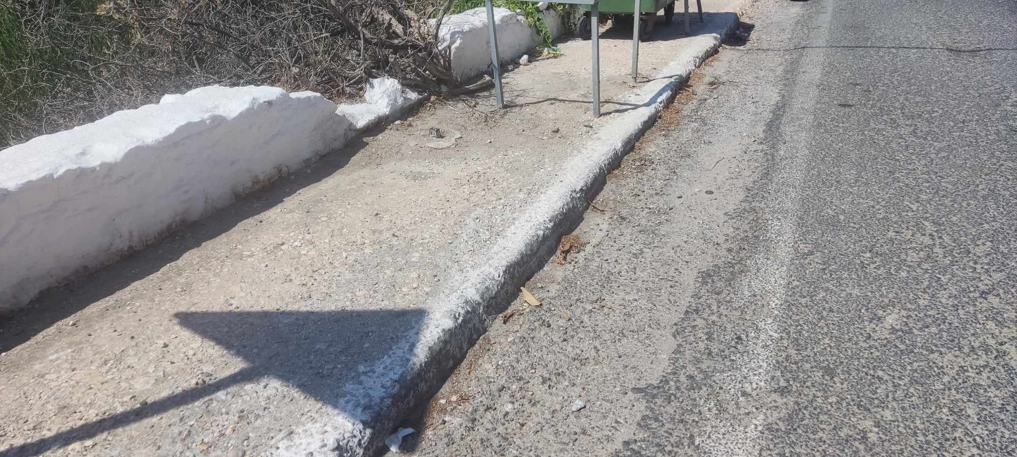 Συγκεκριμένα, σε ένα μεγάλο τμήμα στο περιθώριο του δρόμου, – το οποίο συστηματικά καταλαμβάνεται από οχήματα -, δεν υπάρχει κανένα διακριτό τμήμα πεζοδρομίου, με αποτέλεσμα, τη θερινή, κυρίως, περίοδο να περπατούν μόνιμοι κάτοικοι, αλλά και επισκέπτες, στο οδόστρωμα.