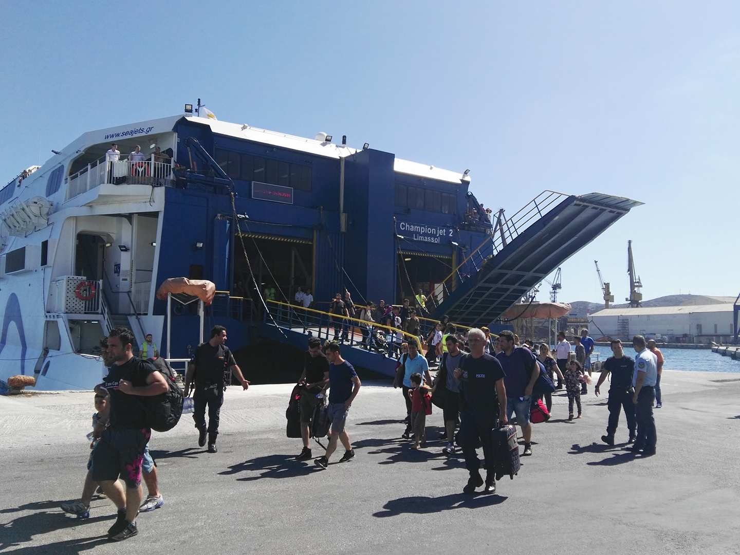 Το ανθρώπινο πρόσωπό της απέδειξε η Σύρος απέναντι στους 75 Ιρακινούς οικονομικούς πρόσφυγες που αφίχθησαν χθες το μεσημέρι με το Champion Jet 2 στο νησί και παρέμειναν έως αργά το βράδυ, μέσω της αξιοπρεπούς φιλοξενίας που προσέφεραν οι αρμόδιες Αρχές στους ίδιους, στον Επιβατικό Σταθμό της Ερμούπολης.