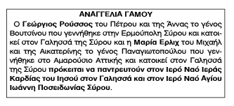 Αναγγελία Γάμου Πέμπτη 8 Φεβρουαρίου 2018 - 11:35 Συντάκτης: Κατερίνα Βιδάλη Κείμενο Βλέπε εικόνα Αριθμός Φύλλου 4812 Κατηγορία Αναγγελία Γάμου