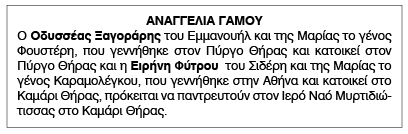 Αναγγελία γάμου για Ξαγοράρη Οδυσσέα και Ειρήνη Φύτρου