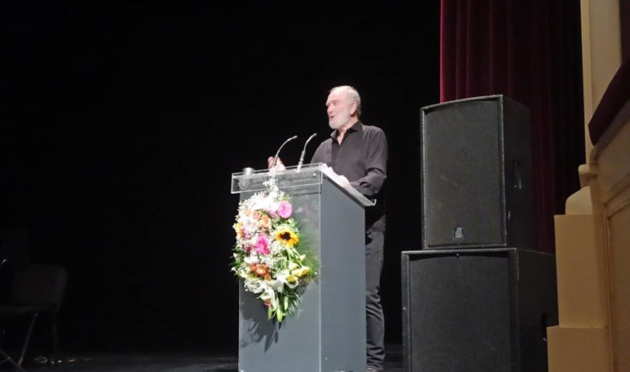Η τιμητική βράβευση έγινε στο κατάμεστο από κόσμο θέατρο Απόλλων, από τον Μπάμπη Κουλούρα, πρόεδρο του Πολιτιστικού Συλλόγου Άνω Σύρου και τον δήμαρχο Σύρου - Ερμούπολης, Αλέξη Αθανασίου, με τον τιμώμενο να δηλώνει, μεταξύ άλλων, ότι η ομάδα των "Συριανών Γραμμάτων" προετοιμάζει την έκδοση εγκυκλοπαίδειας αφιερωμένη στη Σύρο.