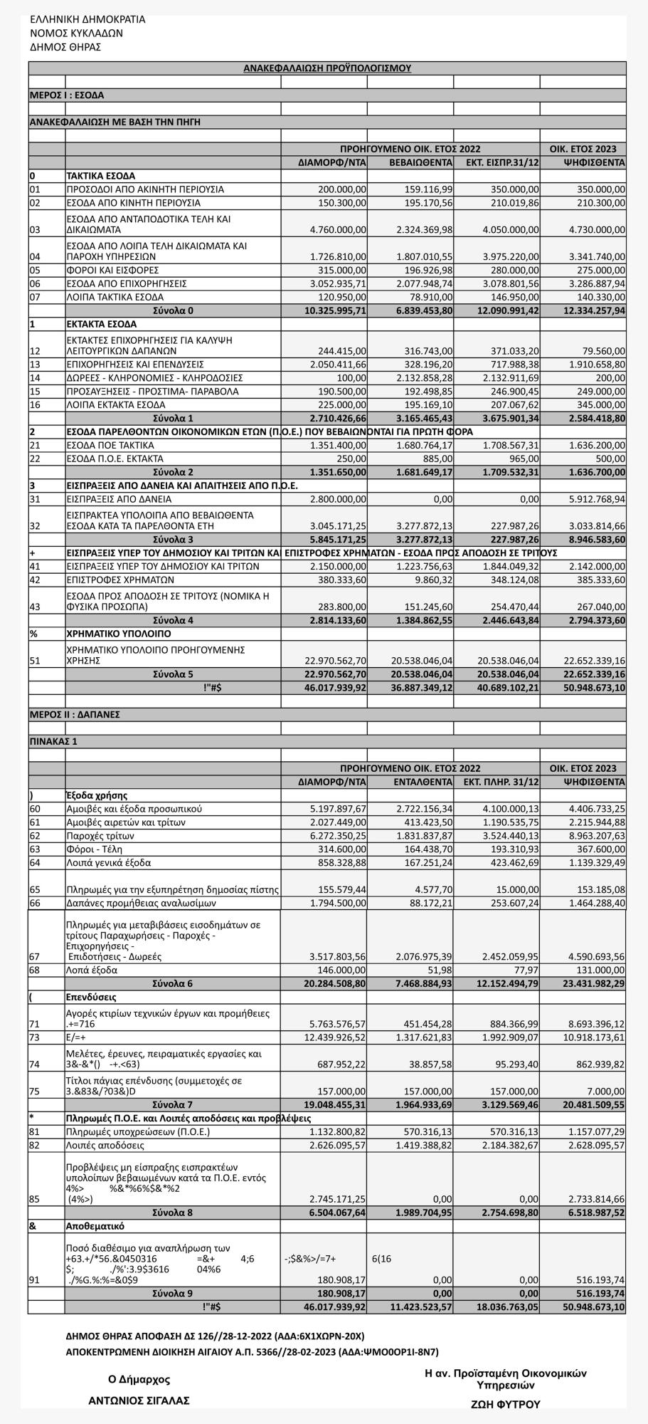 Ανακεφαλαίωση Προϋπολογισμού 2023, από το Δήμο Θήρας Πέμπτη 13 Απριλίου 2023 - 14:54 Συντάκτης: Ρένα Ρούσσου Κείμενο Βλέπε εικόνα. Αριθμός Φύλλου 6104 Κατηγορία Προϋπολογισμοί