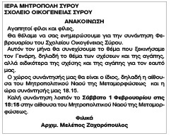 Ανακοίνωση Σχολείου Οικογένειας Δευτέρα 3 Φεβρουαρίου 2020 - 12:01 Συντάκτης: Κατερίνα Βιδάλη Κείμενο Βλέπε εικόνα Αριθμός Φύλλου 5302 Κατηγορία Ανακοίνωση