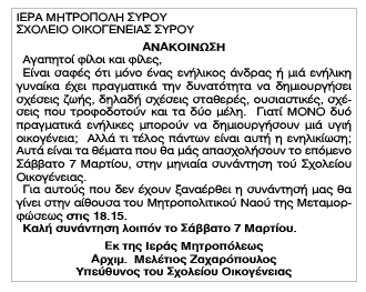 Ανακοίνωση Σχολείου Οικογένειας Παρασκευή 6 Μαρτίου 2020 - 12:40 Συντάκτης: Κατερίνα Βιδάλη Κείμενο Βλέπε εικόνα Αριθμός Φύλλου 5326 Κατηγορία Ανακοίνωση