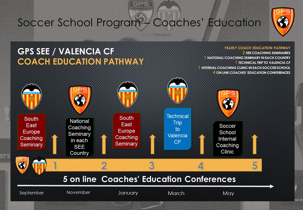 «Το «GPS SEE / Valencia C.F. Soccer Program» έχει ως στόχο να εντοπίσει, να προπονήσει και να αναπτύξει τους πιο ταλαντούχους νεαρούς ποδοσφαιριστές σε κάθε περιοχή της Νοτιανατολικής Ευρώπης. Για να επιτευχθεί αυτό, τα πιο ταλαντούχα παιδιά έχουν την ευκαιρία να εισέλθουν στο πρόγραμμα Elite, να προπονηθούν και να αξιολογηθούν σε ειδικά σχεδιασμένα Camp υπό την καθοδήγηση της εξειδικευμένης προπονητικής ομάδας της GPS Southeast Europe / Valencia C.F. Εκείνοι που θα θεωρηθούν έτοιμοι για το επόμενο βήμα, καλούνται να σχηματίσουν την εθνική ομάδα κάθε χώρας, που θα προπονηθεί και θα αντιμετωπίσει τους καλύτερους παίκτες από όλες τις περιοχές της Ν.Α. Ευρώπης σε εξειδικευμένα Camp και διεθνή τουρνουά. Το πρόγραμμα χωρίζεται σε τρεις φάσεις, σχεδιασμένες ανάλογα με την ηλικιακή κατηγορία: