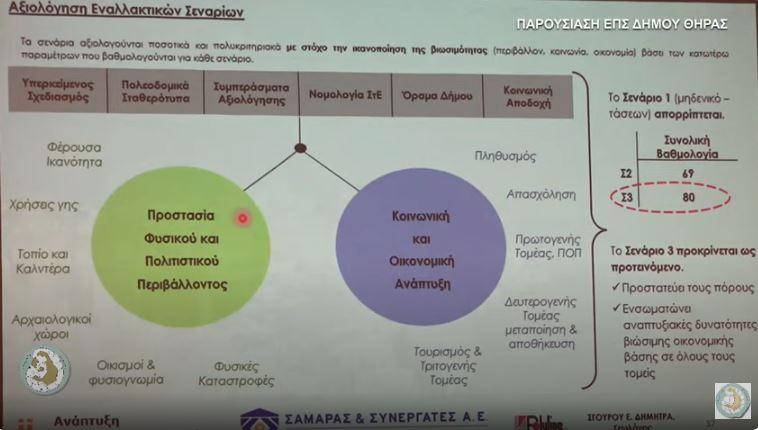 Η παρουσίαση που περίμεναν εδώ και χρόνια οι κάτοικοι και οι φορείς της Σαντορίνης, η οποία αφορούσε στη μελέτη για το Ειδικό Πολεοδομικό Σχέδιο Θήρας, πραγματοποιήθηκε την Πέμπτη 14 Νοεμβρίου στο κατάμεστο Μπελλώνειο Πολιτιστικό Κέντρο, στα Φηρά. Η συγκεκριμένη μελέτη, η οποία ήταν στα σκαριά τα τελευταία χρόνια από την μελετητική εταιρία "Σαμαράς και Συνεργάτες Α.Ε. - Σύμβουλοι Μηχανικοί", απ