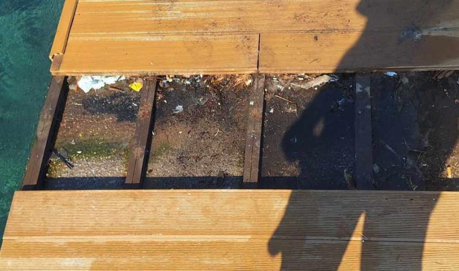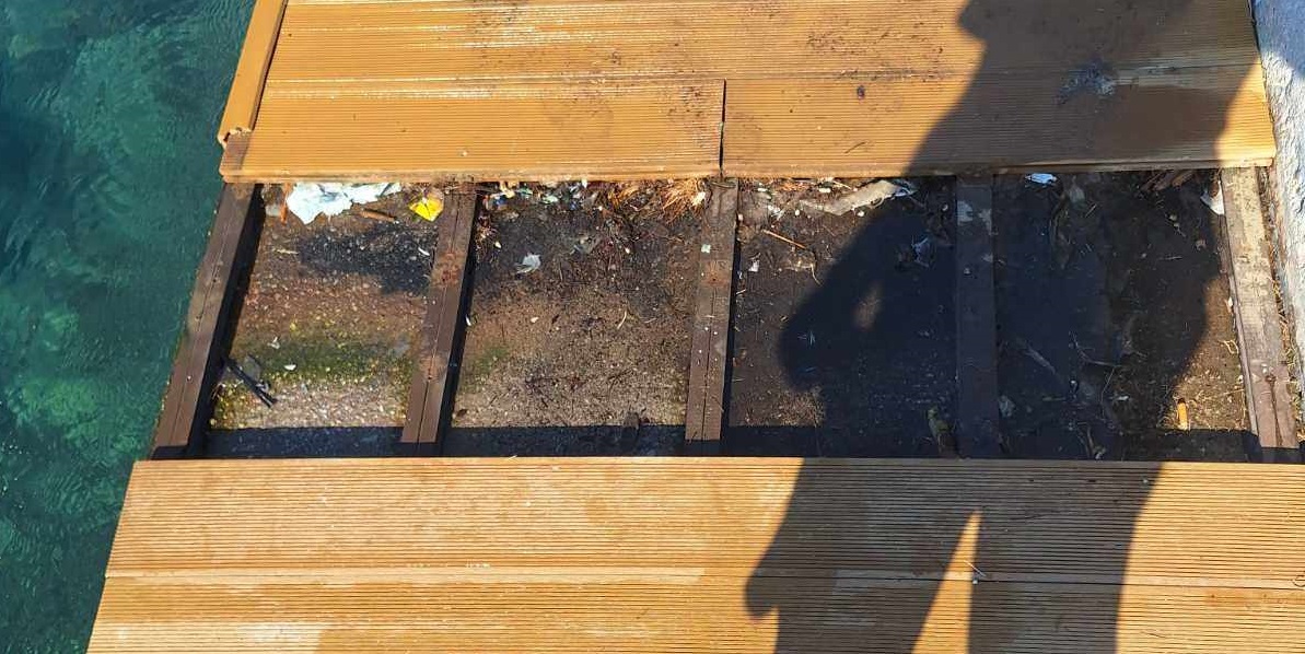 Όπως φαίνεται στις φωτογραφίες της εφημερίδας, είχαν αποκολληθεί τμήματα του ντεκ και είχαν δημιουργηθεί κενά, με αποτέλεσμα να εξέφραζαν πολλά παράπονα εύλογα και οι λουόμενοι, αφού πρακτικά ήταν επικίνδυνη η μετακίνησή τους.