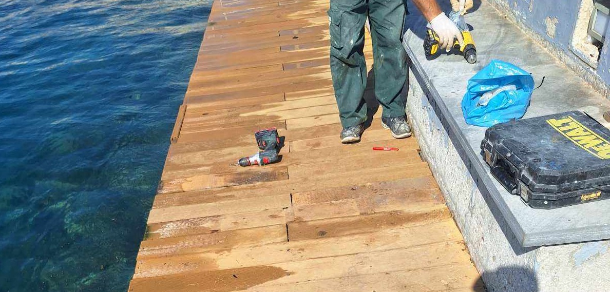 Σε εργασίες αποκατάστασης και συντήρησης του ξύλινου δαπέδου (ντεκ) στη θέση “Νησάκι”, προχώρησε το Λιμενικό Ταμείο Σύρου, προκειμένου οι λουόμενοι να κάθονται, αλλά και να μετακινούνται με ασφάλεια στο σημείο.