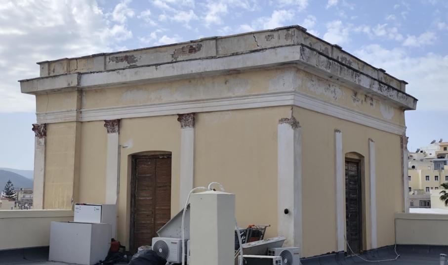 Σύμφωνα με όσα ανέφερε, η εταιρεία BC PERIGRAMMA ΤΕΧΝΙΚΗ ΑΝΑΠΤΥΞΙΑΚΗ ΚΑΙ ΕΜΠΟΡΙΚΗ Α.Ε., που έχει εγκατασταθεί στο νησί για να προωθήσει το έργο για το Δημαρχιακό Μέγαρο, άρχισε τις παρεμβάσεις της από τους πυργίσκους στη στέγη του κτηρίου - μνημείου.