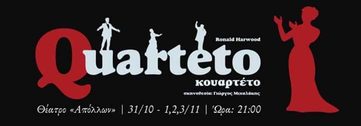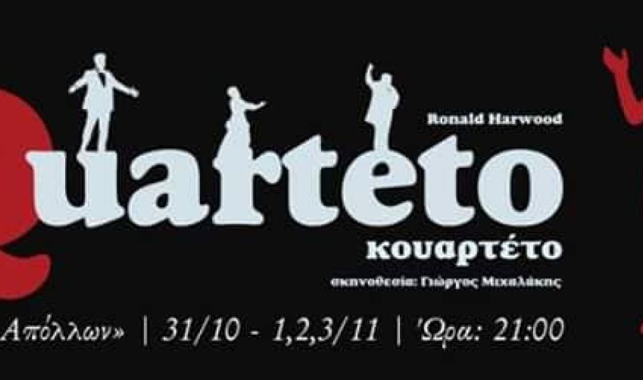 Το «Κουαρτέτο», σε μετάφραση Μαρλένας Γεωργιάδου, διαδραματίζεται σ’ έναν οίκο ευγηρίας για παλαίμαχους μουσικούς και τραγουδιστές της όπερας. Οι πρωταγωνιστές, διάσημοι άλλοτε, βρίσκονται εκεί επειδή είναι αναγκασμένοι και όλοι τους υποφέρουν από την αγωνία του γήρατος, ξέροντας καλά πως, σήμερα πια, είναι ελάχιστα γνωστοί έξω από αυτούς τους τοίχους.