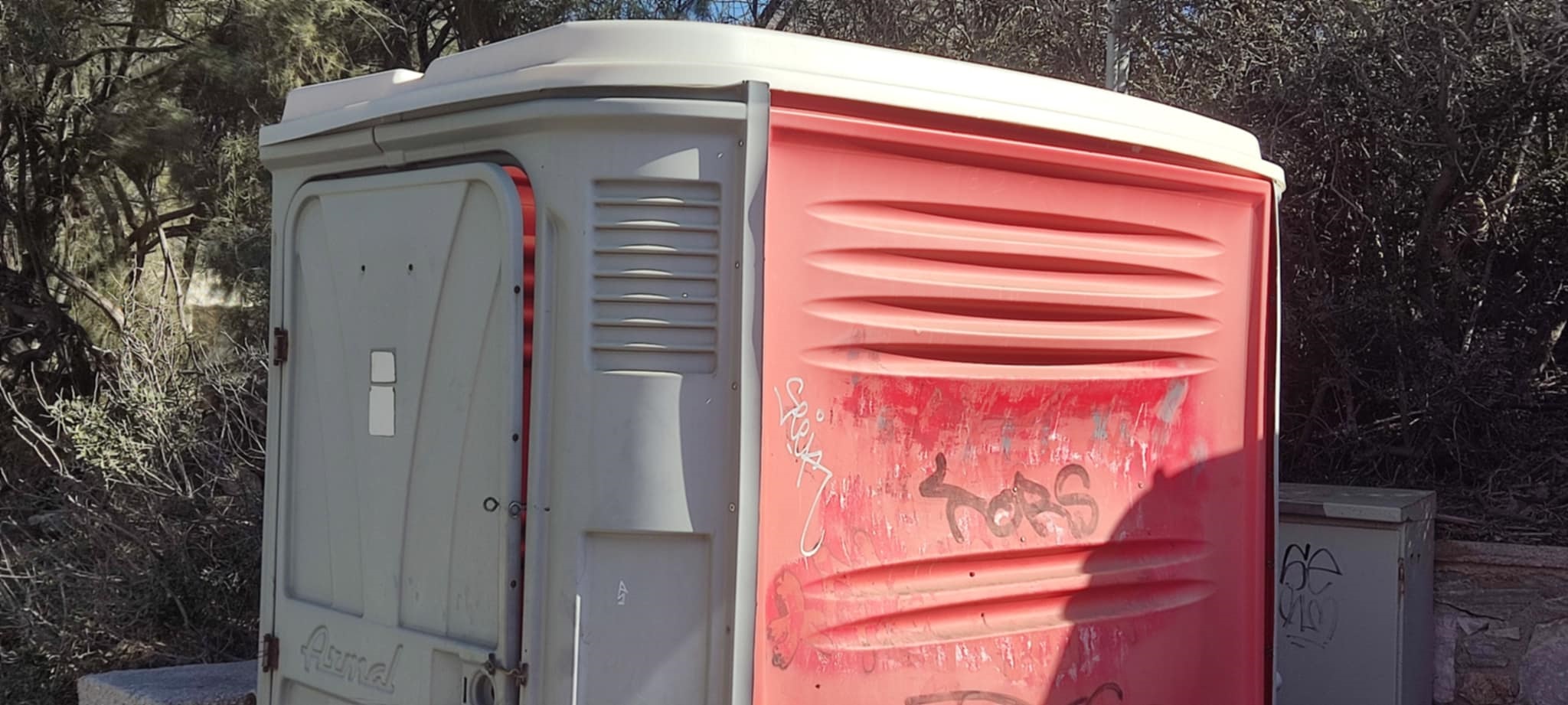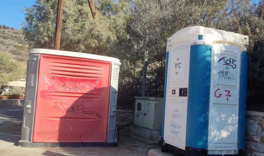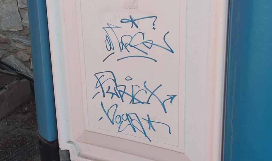Επιπλέον, προφανώς μετά από κάποιο δυνατό “χτύπημα”, έχουν βάλει “μέσα”, ένα τμήμα της χημικής τουαλέτας για τα ΑΜΕΑ, ενώ έχουν βάψει συνολικά τις εξωτερικές επιφάνειές του. Παρομοίως, έχουν προκαλέσει φθορές και στη διπλανή χημική τουαλέτα που εξυπηρετεί μεγάλο αριθμό πολιτών την καλοκαιρινή περίοδο.