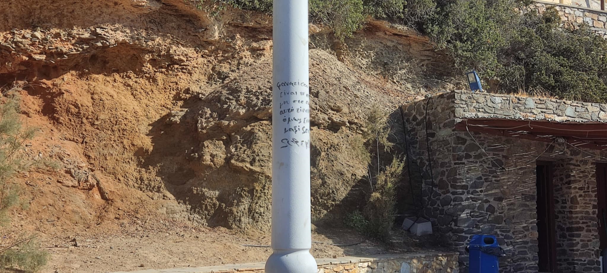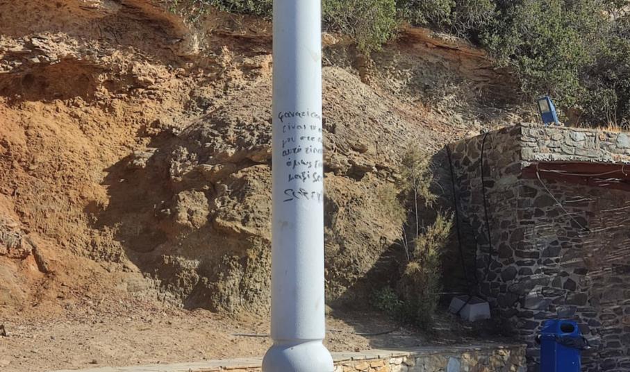 Ειδικότερα, άγνωστοι έχουν προχωρήσει στην αναγραφή συνθημάτων σε όλους τους ιστούς των μεγάλων φωτιστικών στο λιμανάκι του χωριού, ενώ παράλληλα έχουν κινηθεί και στο τμήμα πάνω από την παραλία που έχει εξοπλισμό για λουόμενους και ΑΜΕΑ.
