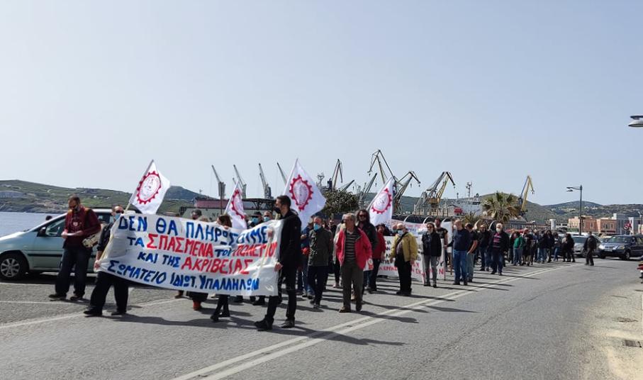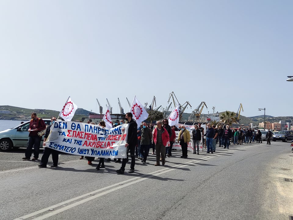 Με τη συμμετοχή αρκετών μελών από Σωματεία και Συλλόγους της Σύρου και των Κυκλάδων πραγματοποιήθηκε η χθεσινή απεργιακή κινητοποίηση στο νησί, με τους πολίτες που ανταποκρίθηκαν στο σχετικό κάλεσμα να πραγματοποίησαν διαδήλωση ενάντια στην πολιτική που φτωχοποιεί τον λαό.