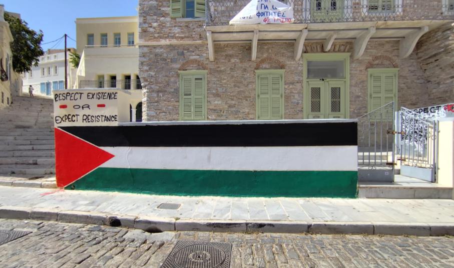 Την κάθετη διαφωνία τους με την αισθητική υποβάθμιση του ιστορικού κτηρίου που στεγάζεται το Πανεπιστημιακό Τμήμα της Σύρου, στο κέντρο της Ερμούπολης, εξέφρασαν αιρετά πρόσωπα, χθες στη Δημοτική Επιτροπή, με αφορμή τη δημιουργία σε μορφή γκράφιτι της παλαιστινιακής σημαίας, επάνω σε αρκετά μέτρα τοίχου.