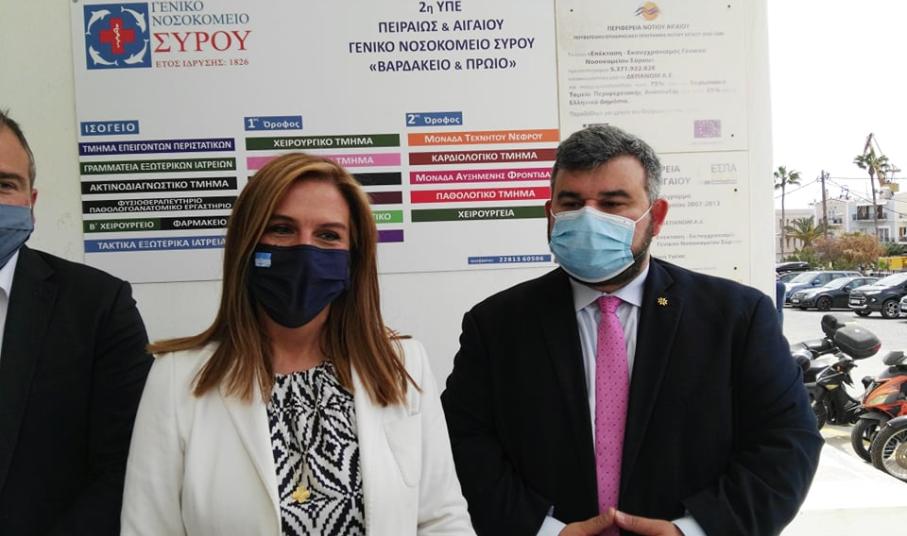 Η ίδια αφού ενημερώθηκε αναλυτικά για τη λειτουργία του Νοσοκομείου και τις υπηρεσίες που προσφέρονται τόσο προς τους Συριανούς, όσο όμως και προς τους Κυκλαδίτες γενικότερα, γνωστοποίησε την πρόθεση του Υπουργείου να υπάρξει ανταπόκριση για ορισμένα αιτήματα και ανάγκες, όπως μεταξύ άλλων, η στήριξη Τμημάτων με προσωπικό, καθώς και η ενδυνάμωση του υπάρχοντος προσωπικού, το οποίο έχει ριχτεί στη “μάχη” κατά της πανδημίας.