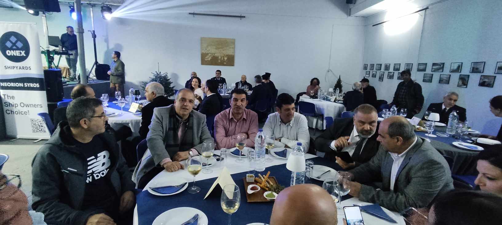 Σύσσωμη η “οικογένεια” του Νεωρίου έδωσε το “παρών” στην εκδήλωση που έλαβε χώρα στις εγκαταστάσεις του ναυπηγείου Σύρου, όπως επίσης παρευρέθηκαν μεταξύ άλλων, εκπρόσωποι της Καθολικής και της Ορθόδοξης εκκλησίας, ο βουλευτής Κυκλάδων, Φίλιππος Φόρτωμας, ο αντιπεριφερειάρχης Κυκλάδων, Γιώργος Λεονταρίτης, ο δήμαρχος Σύρου – Ερμούπολης, Αλέξης Αθανασίου, ο λιμενάρχης Σύρου, Παναγιώτης Καραμήτρας, ο διοικητής της Αστυνομίας στην περιφέρεια Ν. Αιγαίου, Λουκάς Θάνος, ο πρόεδρος του Επιμελητηρίου Κυκλάδων, Γιάννης Ρούσσος καθώς και άλλοι εκπρόσωποι των Σωμάτων Ασφαλείας, φορέων και προμηθευτών.