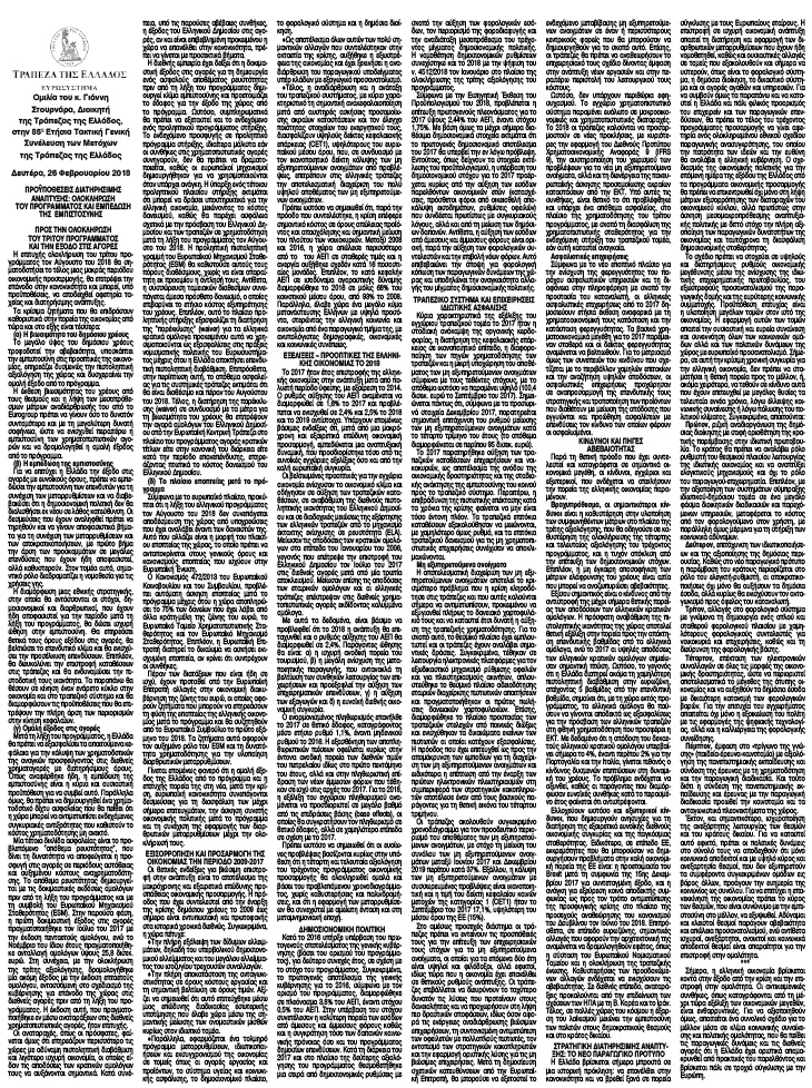 Έκθεση του Διοικητή της Τράπεζας της Ελλάδος Δευτέρα 12 Μαρτίου 2018 - 11:49 Συντάκτης: Κατερίνα Βιδάλη Κείμενο Βλέπε εικόνα Αριθμός Φύλλου 4832 Κατηγορία Ανακοίνωση