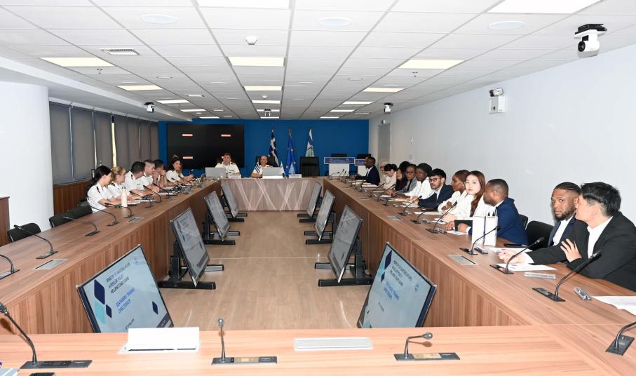 Την Δευτέρα 05 Μαΐου 2025 πραγματοποιήθηκε επίσκεψη στις εγκαταστάσεις του Υπουργείου Ναυτιλίας και Νησιωτικής Πολιτικής δεκαεπτά (17) σπουδαστών του Παγκόσμιου Ναυτιλιακού Πανεπιστημίου του ΙΜΟ (Malmo, Sweden) καθώς και ενός (01) συνοδού βοηθού καθηγητή του εν λόγω Πανεπιστημίου στα πλαίσια του ετήσιου εκπαιδευτικού τους ταξιδιού στην Ελλάδα.