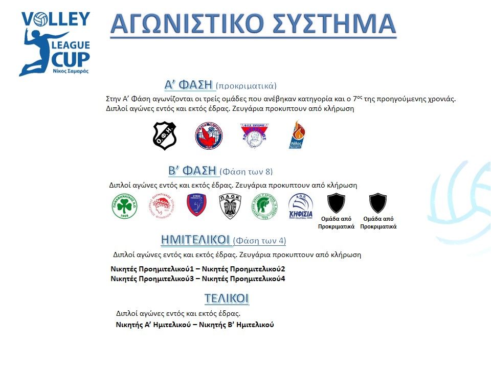 Το Διοικητικό Συμβούλιο της ΕΣΑΠ στη συνεδρίαση της 26ης Ιουλίου αποφάσισε τα ακόλουθα σχετικά με το σύστημα διεξαγωγής του πρωταθλήματος Volley League και του Λιγκ Καπ Νίκος Σαμαράς: